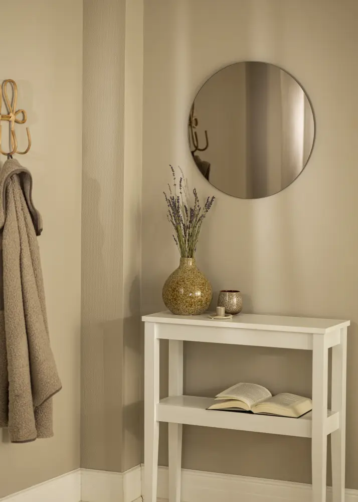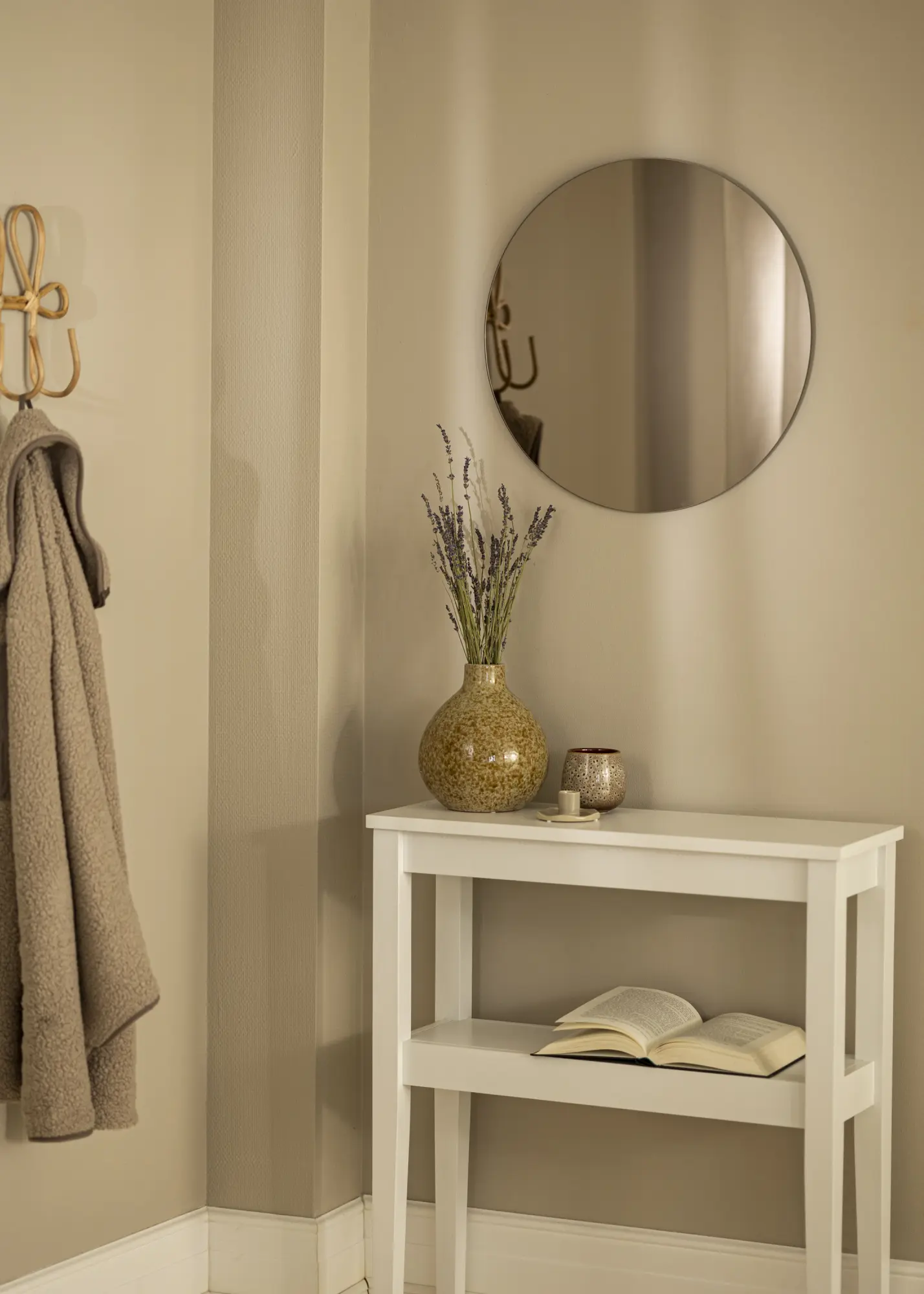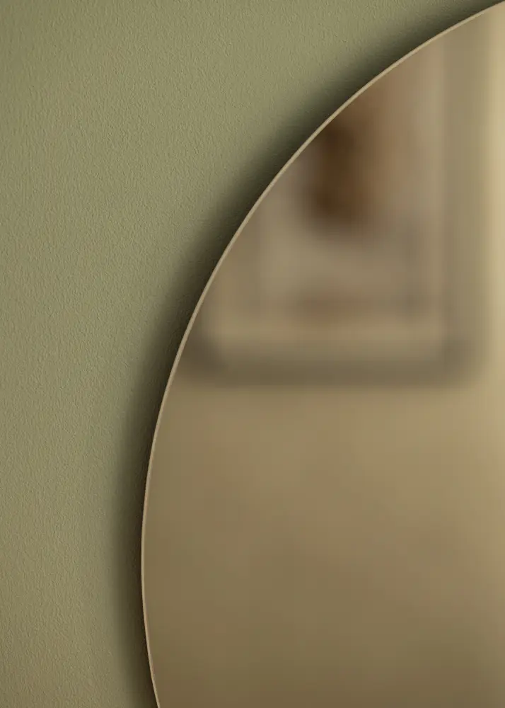 Această oglindă rotundă are un design subțire fără ramă, oferind un aspect elegant și exclusivist, care înfrumusețează orice cameră. Cu sticlă de oglindă într-o nuanță de bronz, oglinda de perete are un aspect bogat și primitor, potrivit perfect în casele moderne. Oglinda face parte dintr-o serie de oglinzi rotunde, de culoarea bronzului, de la KAILA și poți alege între șapte dimensiuni diferite pentru a o găsi pe cea care se potrivește cel mai bine casei tale. Acest model are un diametru de 50 cm. Poți să agăți ușor oglinda în hol sau în camera de zi cu ajutorul suportului de perete.