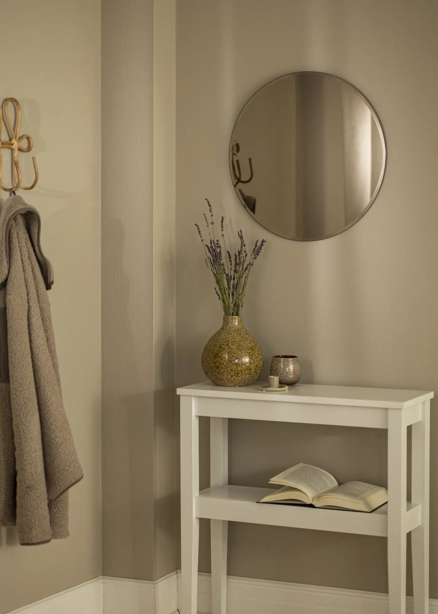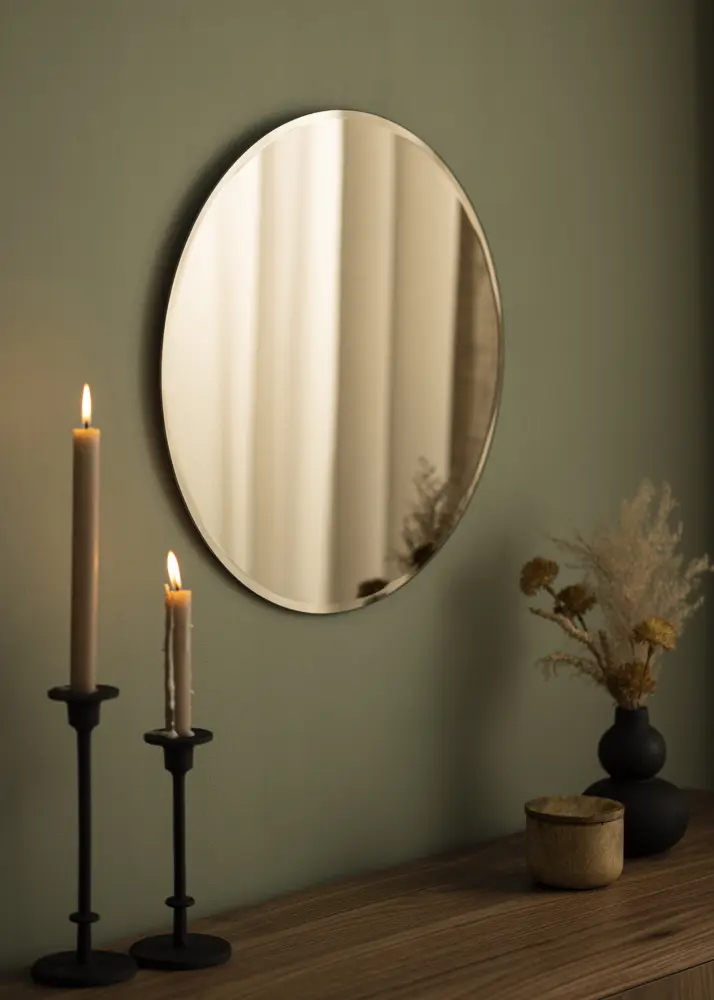 O oglindă într-o nuanță de bronz mai închis va fi un element exclusivist în casa ta. Această oglindă de perete are o formă rotundă și blândă și un sticlă elegantă tonată în bronz. Întregul exclusivist este completat de marginea șlefuită în fațetă. Oglinda funcționează la fel de bine pe cont propriu, cât și împreună cu alte oglinzi de dimensiuni și nuanțe diferite.