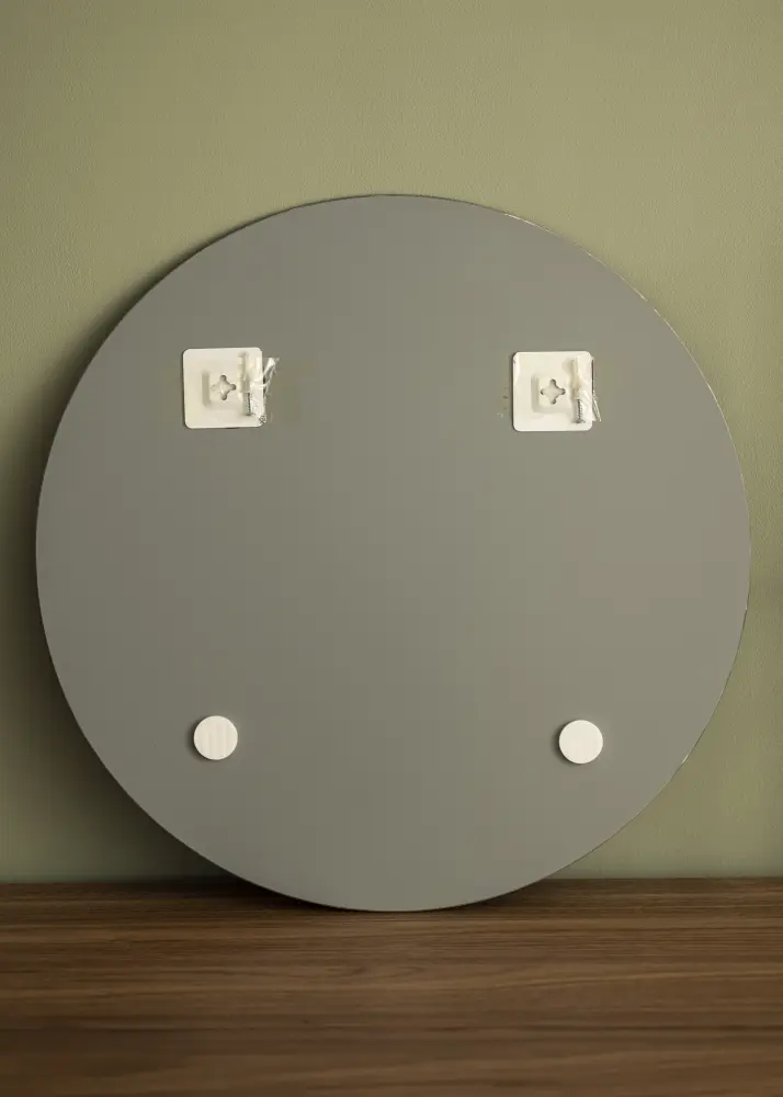 Această oglindă de perete are un sistem de prindere pe perete pe spate pentru a facilita agățarea.