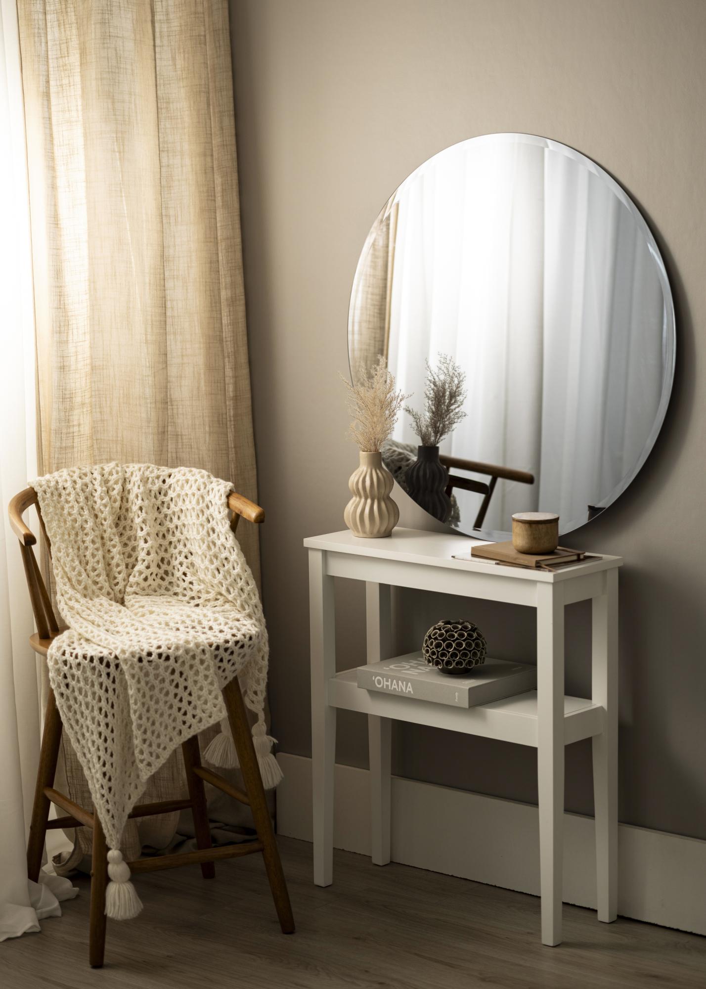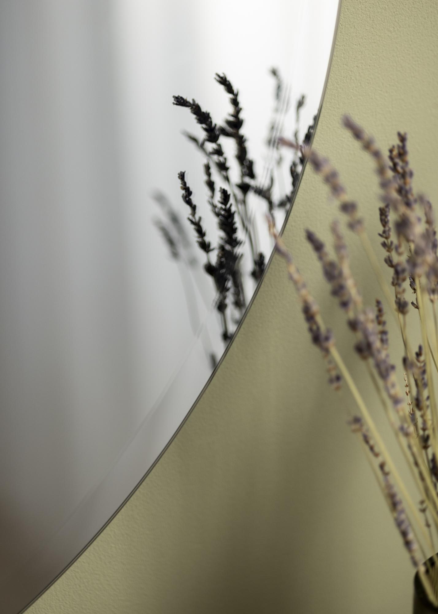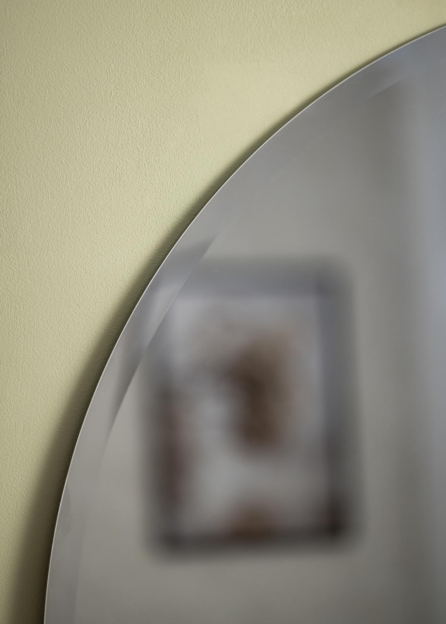Sentimentul elegant pe care forma și culoarea oglinzii îl transmit este accentuat de faptul că oglinda nu are ramă. În schimb, marginile sunt împodobite cu o margine fațetată îngrijită, care conferă oglinzii acel ceva în plus.