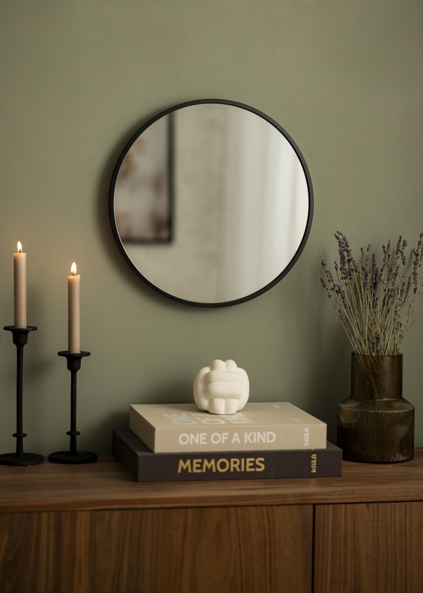 KAILA Round Mirror Edge Black este o oglindă rotundă cu un cadru metalic subțire și elegant, colorat în negru mat, oferindu-i un aspect industrial și la modă. Cadrul are – în funcție de dimensiune – o adâncime între 30-40 mm, ceea ce face ca geamul oglinzii să iasă puțin în afara peretelui și să creeze un efect 3D impresionant. Adâncimea cadrului face, de asemenea, ca oglinda să pară solidă, menținând în același timp un aspect minimalist. O oglindă rotundă perfectă de plasat în orice cameră unde doriți să adăugați funcționalitate și un design suedez elegant!