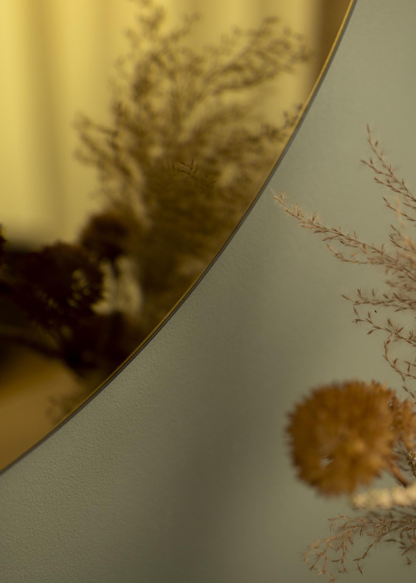 KAILA Oglindă Rotundă Aurie este disponibilă în mai multe dimensiuni, iar această variantă are dimensiunea de 70 cm Ø.