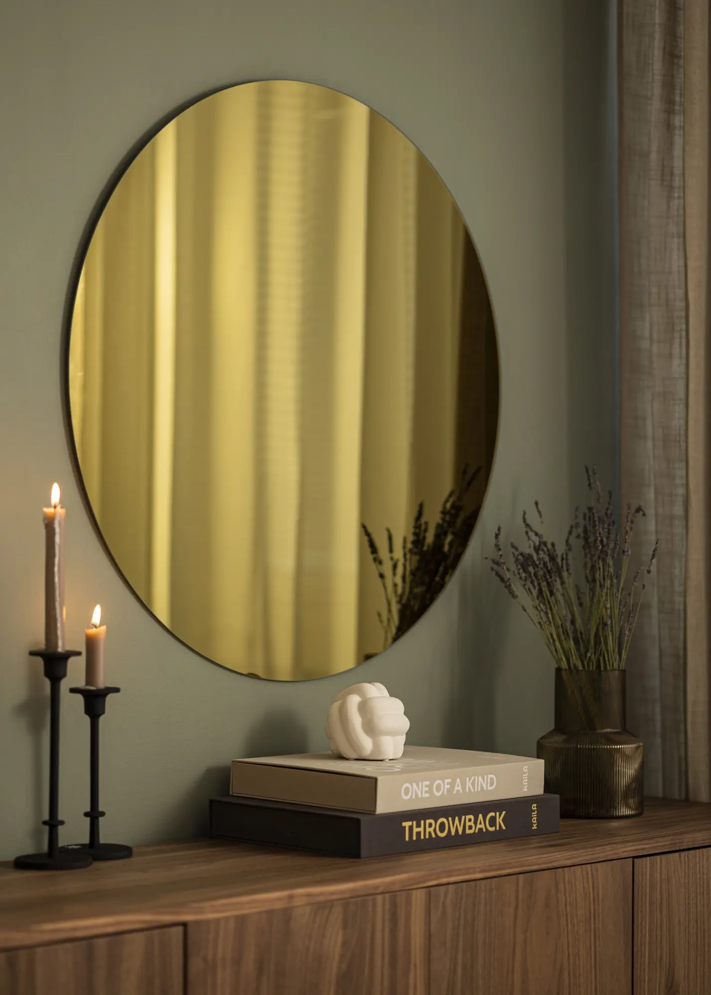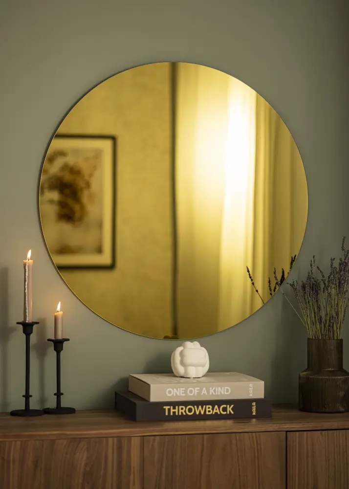 KAILA Oglindă Rotundă Gold este o oglindă de perete la modă cu o senzație exclusivistă! Sticla oglinzii este nuanțată în auriu, care face oglinda să iasă în evidență într-un mod foarte elegant. Oglinda este, de asemenea, foarte subțire și nu are cadru, ceea ce o face să pară și mai modernă și mai elegantă.