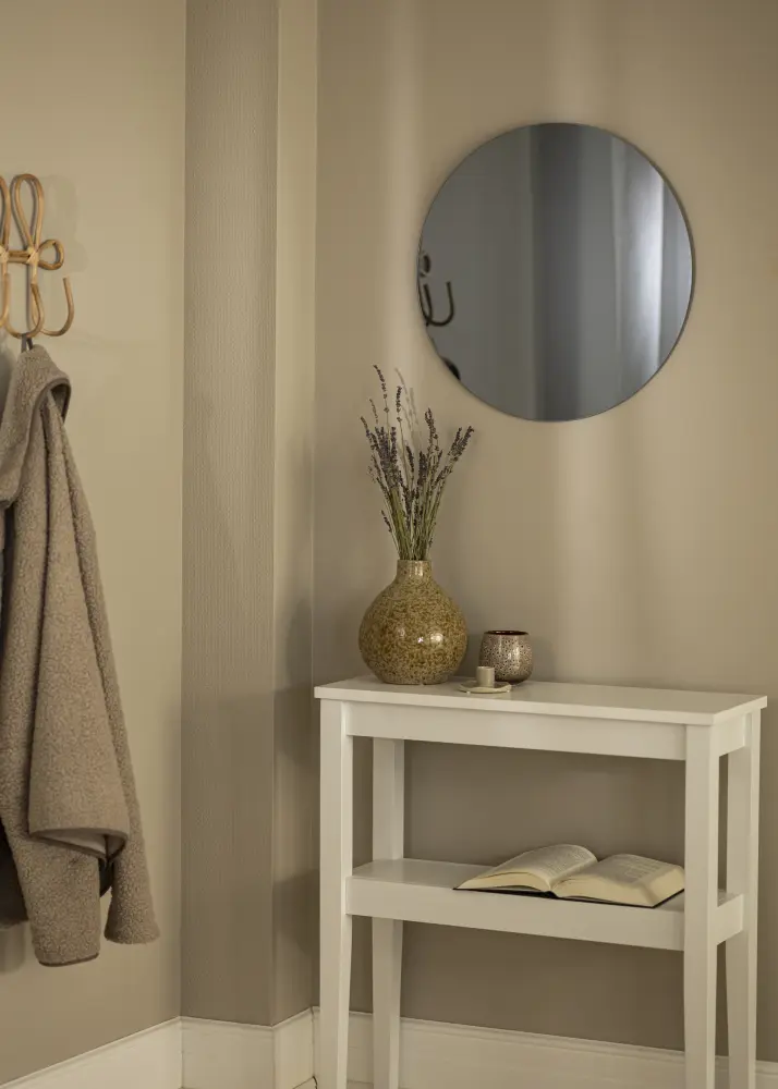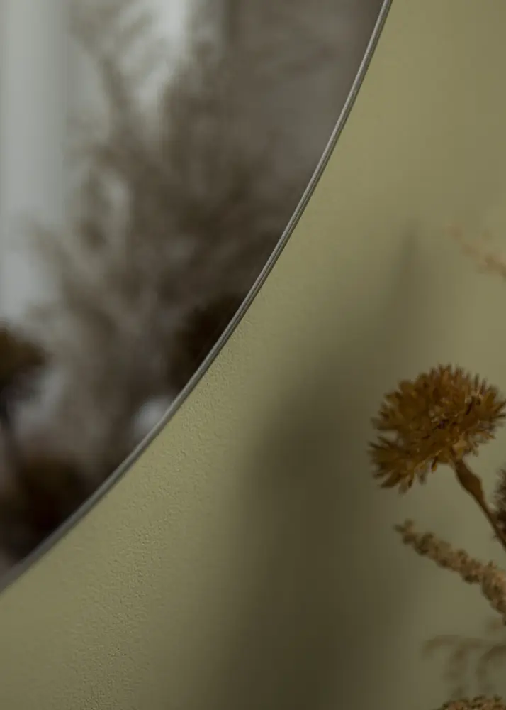 KAILA Oglindă rotundă Smoked Grey – o oglindă elegantă care iese în evidență! Oglinda rotundă este subțire și fără ramă, ceea ce îi conferă un aspect simplu și elegant. În combinație cu sticla oglinzii în nuanțe de gri, rezultatul este o oglindă de perete atrăgătoare, dar în același timp foarte rafinată. Există, de asemenea, un contrast minunat și interesant între forma rotundă și moale a oglinzii și sticla rece, în nuanțe de gri, ceea ce reprezintă un alt aspect elegant al acestei oglinzi moderne.