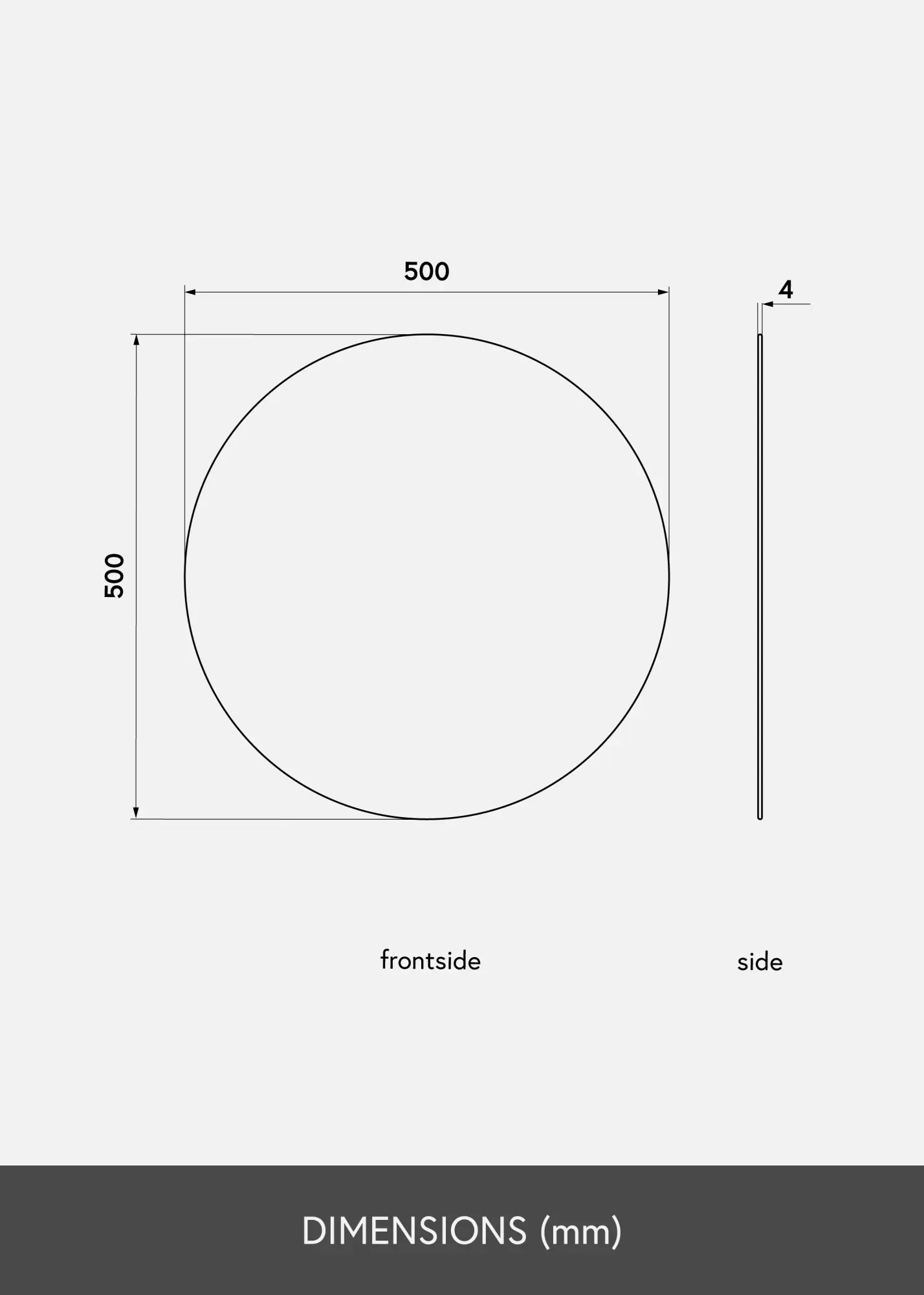 Această oglindă rotundă este disponibilă în mai multe dimensiuni, dintre care această variantă are dimensiunea de 50 cm Ø.