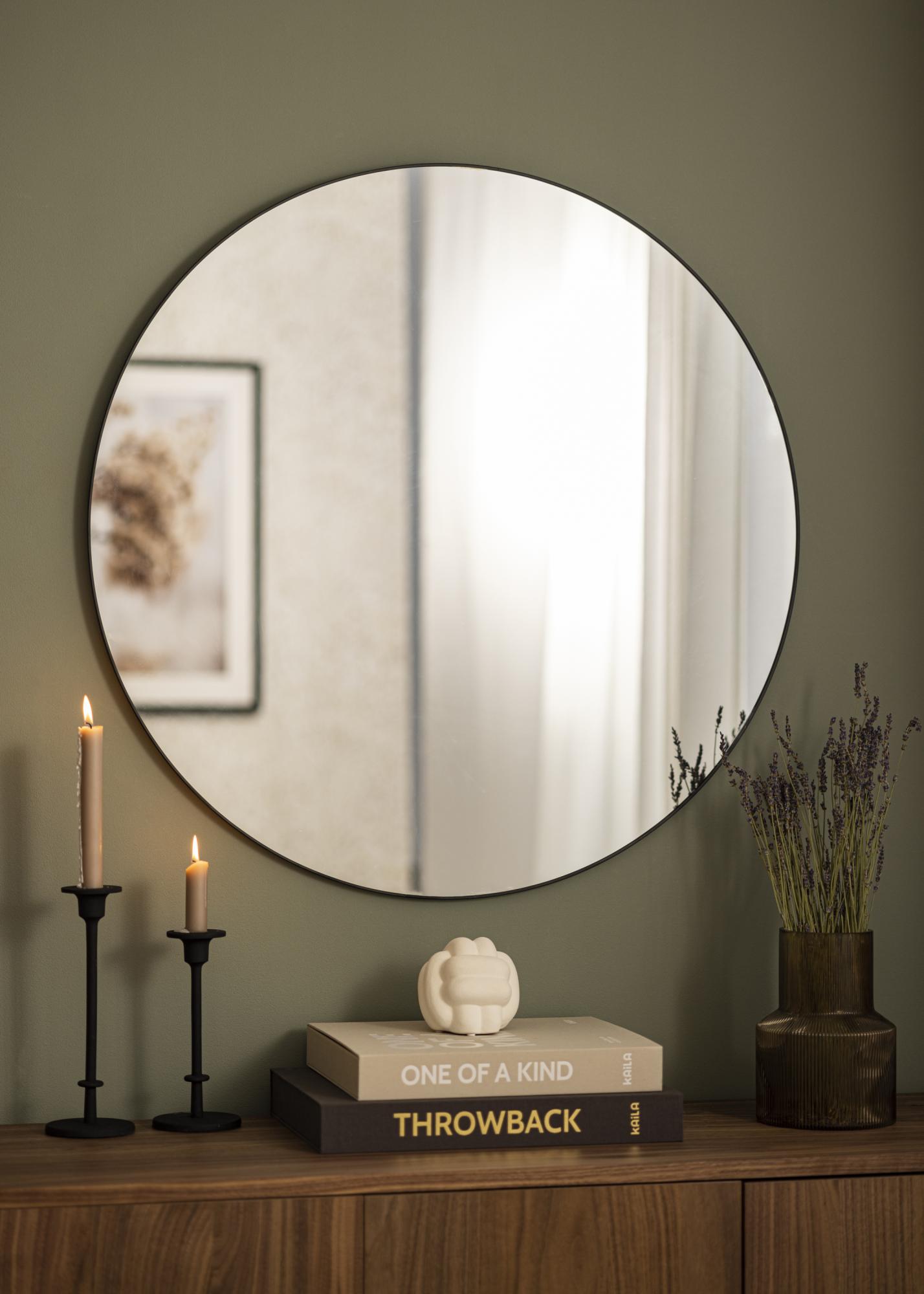 KAILA Thin Black este o oglindă rotundă și elegantă, cu o ramă subțire din metal vopsită negru ce conferă oglinzii o senzație industrială. Designul său simplu face ca oglinda să se potrivească în orice casă și stil de interior – atât clasic, cât și modern. În armonie cu alte decorațiuni industriale sau ca un contrast elegant într-o amenajare mai delicată.