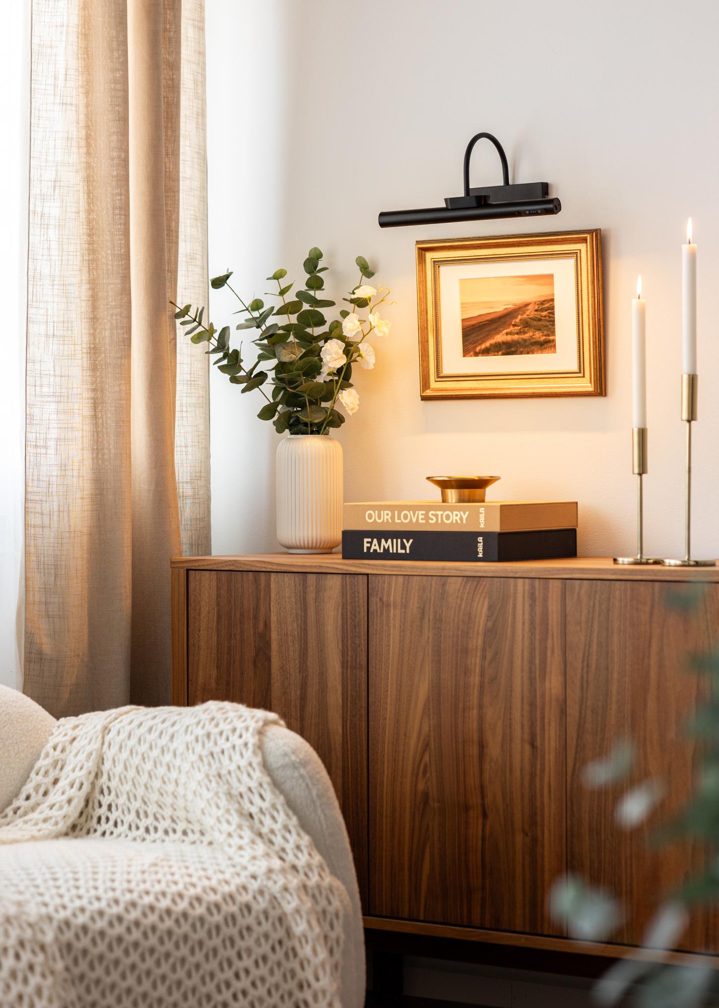 Această iluminare pentru tablouri alimentată de baterii îți oferă posibilitatea de a-ți lumina operele de artă fără a avea nevoie de cabluri, ceea ce permite plasarea sa oriunde pe perete. Cu un design elegant și modern în negru, iluminarea se integrează în multe tipuri de amenajări interioare, iar cu adâncimea sa compactă de 14 cm ocupă un spațiu minim în timp ce luminează opere de artă cu o lățime de până la 60 cm.
