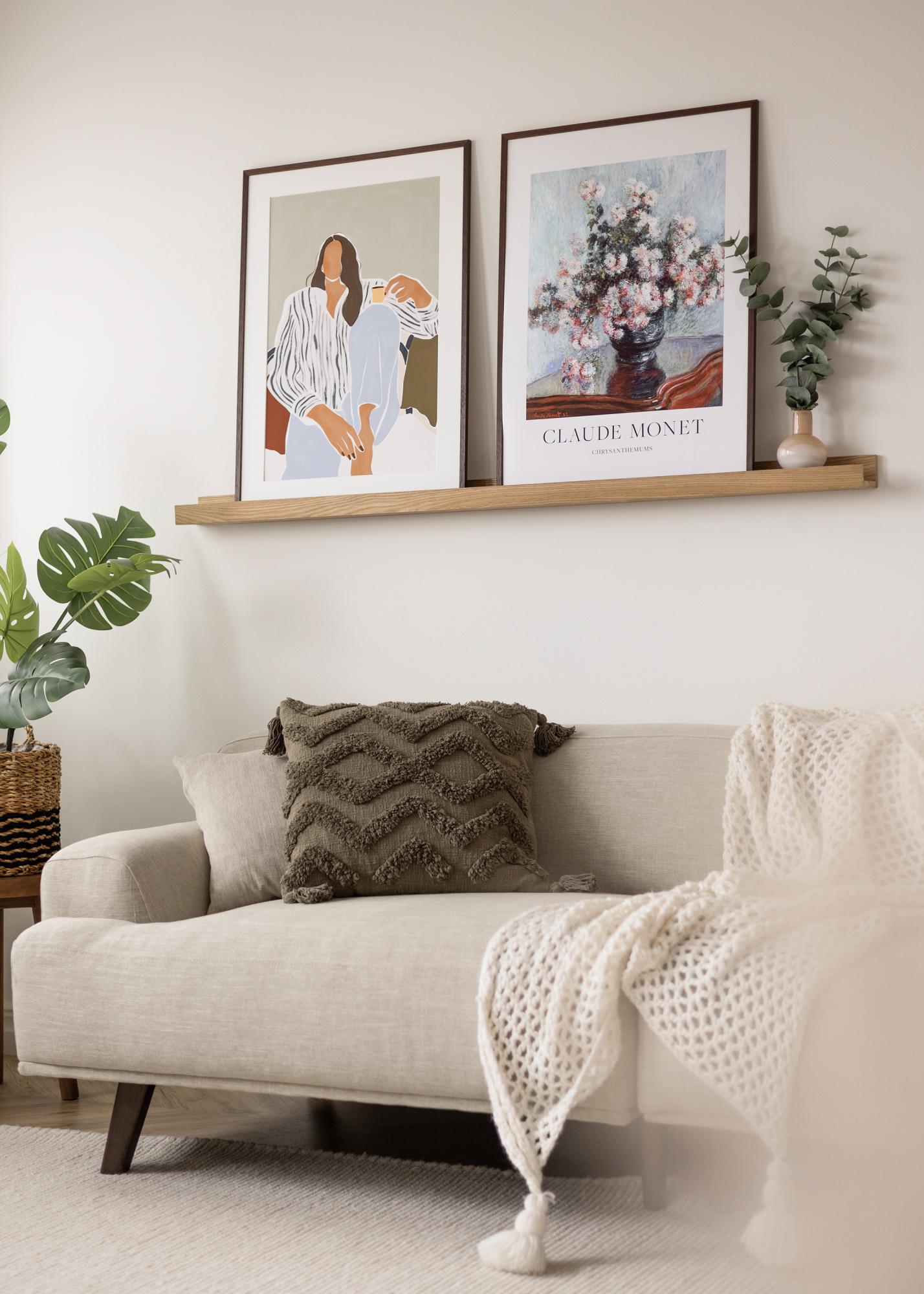 Cu un raft de tablouri practic, îți expui tablourile într-un mod elegant și, în același timp, îți oferi posibilități excelente de a varia arta de pe pereți. Acest raft de tablouri este fabricat din stejar solid și are un design stilat cu linii simple și drepte. Propriul raft are o crestătură frezată care oferă suport tablourilor tale, făcându-le să aibă un unghi frumos unde sunt sprijinite de perete. Raftul de tablouri este disponibil în mai multe lungimi, dintre care această variantă are o lungime de 140 cm. Raftul de tablouri are și găuri pre-găurite, iar pentru a face totul și mai simplu, sunt incluse și șuruburi și dibluri potrivite.