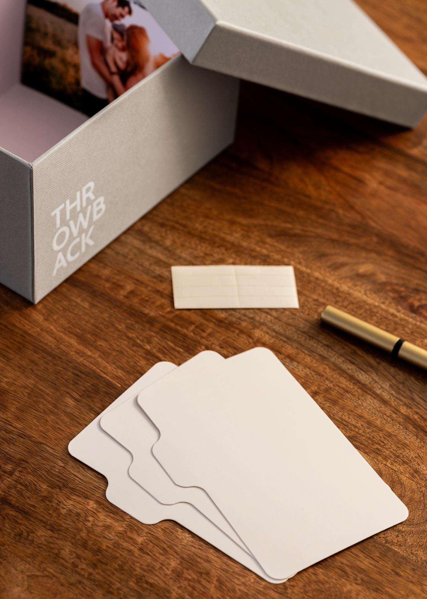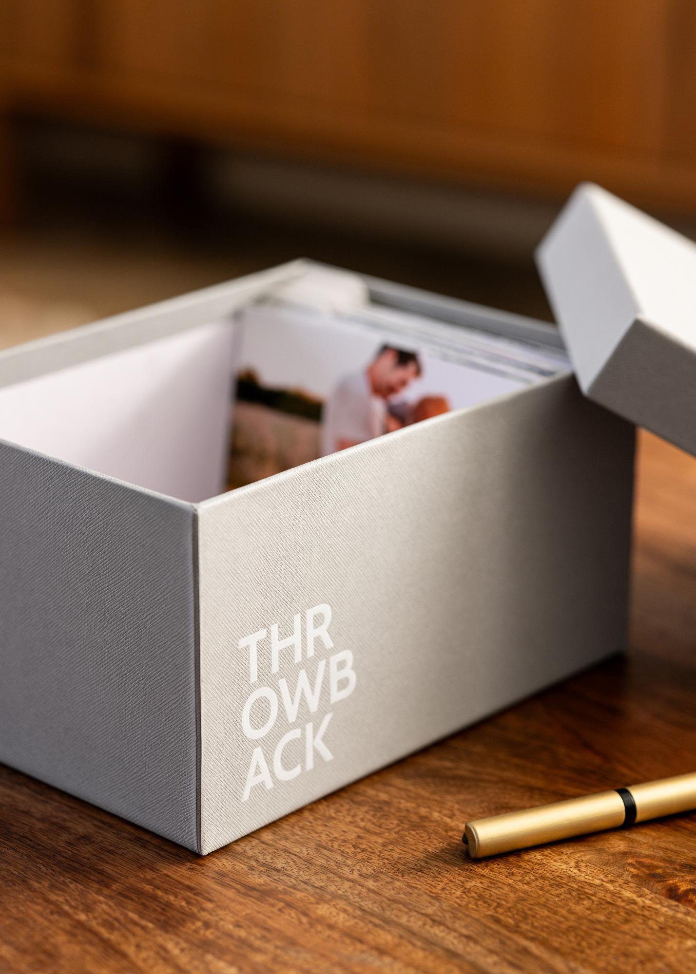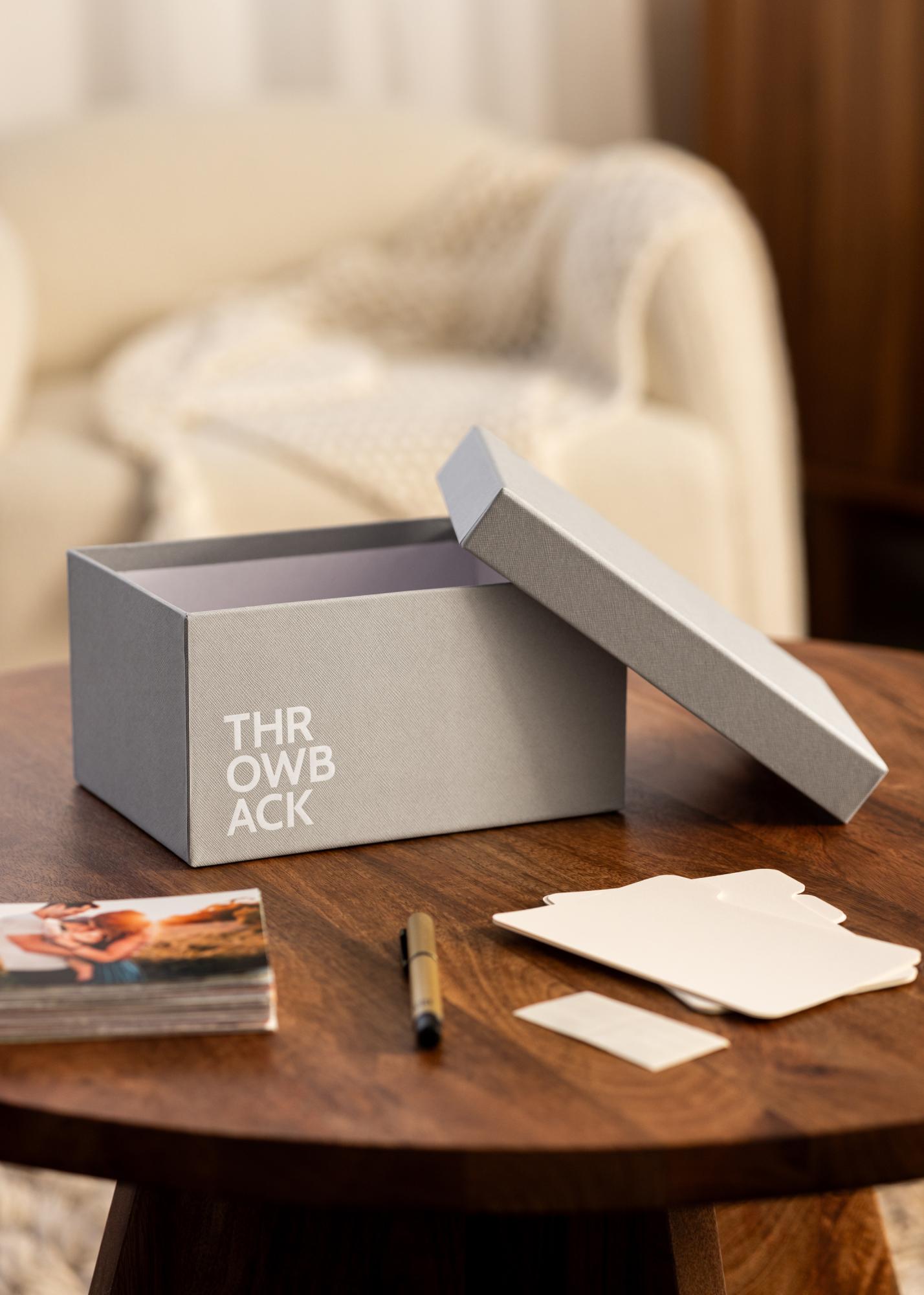 KAILA Throwback Photo Box este o cutie de fotografii elegantă și practică într-o nuanță elegantă de gri. Ea poate conține până la 700 de fotografii de dimensiunea 10x15 cm și este perfectă pentru a organiza și păstra amintirile tale preferate. O soluție decorativă și funcțională pentru cei care doresc să aibă fotografiile strânse într-un mod stilat.