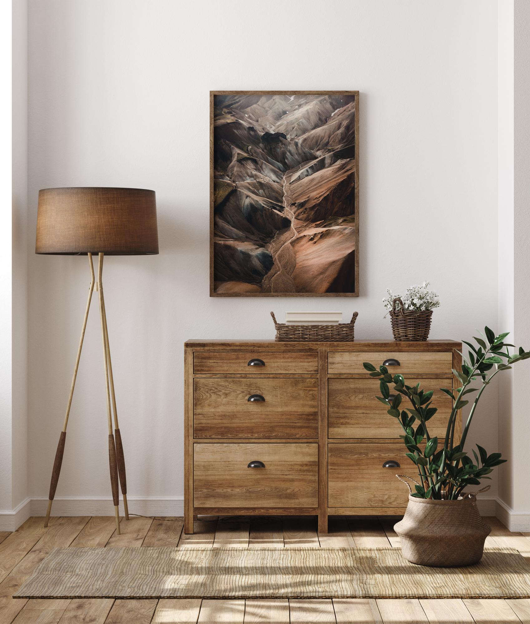 O imagine spectaculoasă a munților Ryholite colorați, văzută din aer. Tonurile maro, calde și moi de toamnă creează o senzație de căldură și transformă acest poster într-o sursă de inspirație pentru a-l agăța în casa ta. Urmează cărarea singuratică și vezi unde te duce pe acest frumos traseu de natură.