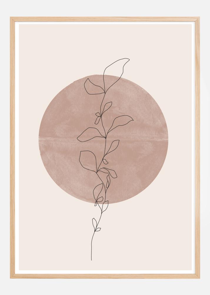 Acest poster prezintă o ilustrație delicată, realizată prin linii, a unei crenguțe înflorite, ale cărei contururi se joacă împotriva unui cerc mare, pictat într-o nuanță liniștitoare și pământie. Contrastul dintre motivul floral minimalist și culoarea puternică a fundalului creează o dinamică interesantă, care este atât liniștitoare, cât și estetic plăcută.