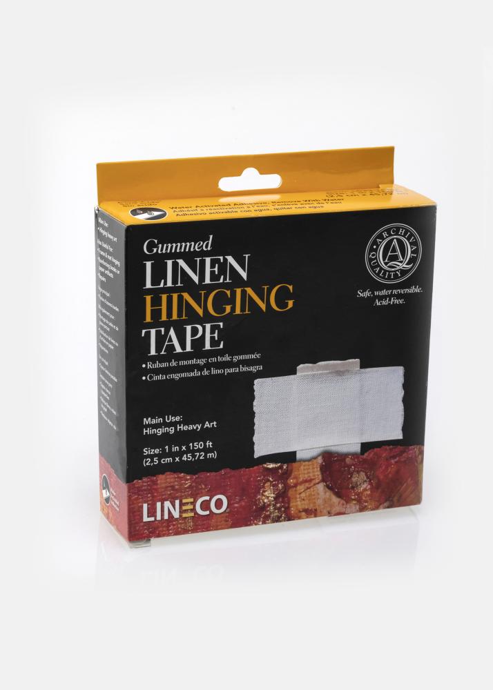 Bandă de pânză cauciucată, fără acid. Pentru agățarea operelor de artă mai grele. Aplicați presiune pe bandă timp de 15 minute înainte de utilizare. 25 mm x 45,72 mtr, 63gm2.