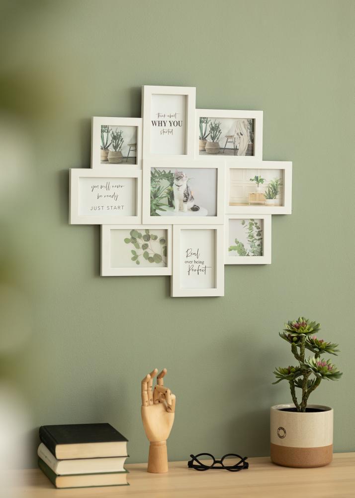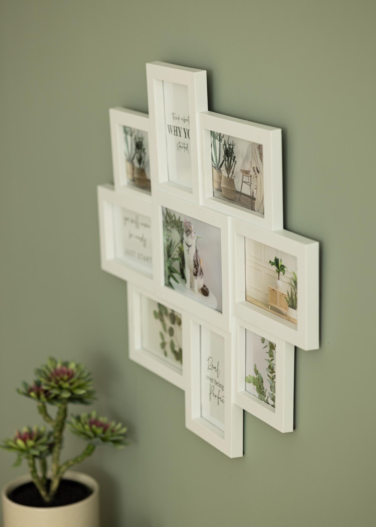 Cu această ramă de colaj elegantă, poți aduna toate pozele tale preferate într-o singură ramă! Rama foto poate găzdui în total 9 imagini; 2 imagini de 10x10 cm, 6 imagini de 10x15 cm și 1 imagine de 13x18 cm. De asemenea, poți plasa imagini atât în poziție verticală, cât și orizontală, ceea ce îți permite mai multă flexibilitate în alegerea fotografiilor. Rama are o formă asimetrică care oferă un aspect trendy și modern.