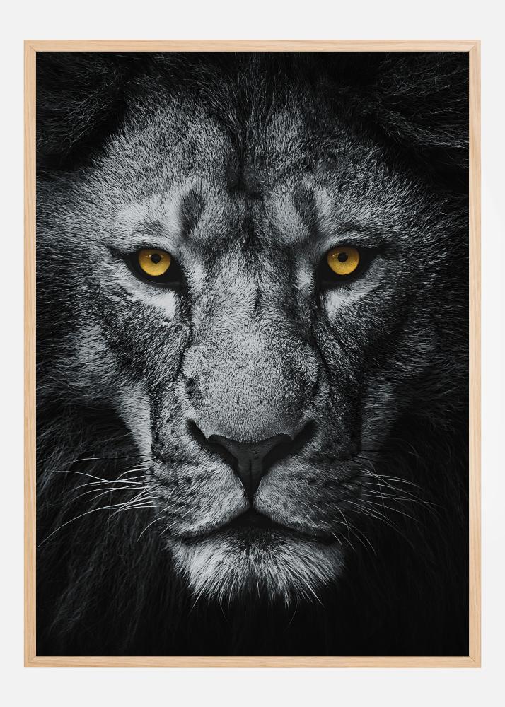 Această postare îndrăzneață și sugestivă prezintă portretul leului cu un nivel impresionant de detalii. Imaginea este în alb-negru, cu excepția ochilor leului, care strălucesc într-o culoare galbenă puternică și vibrantă, creând un punct focal irezistibil în motiv. Utilizarea bine gândită a culorii și contrastului oferă o senzație de intensitate și prezență care captează și menține atenția privitorului. Acest poster este perfect pentru cei care caută o senzație de forță sălbatică și naturală în decorul lor.