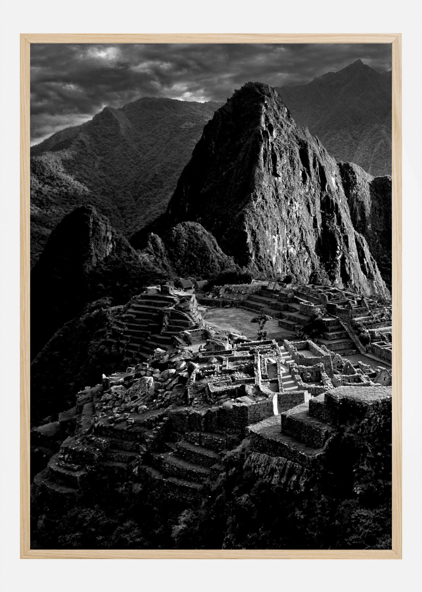 Un imprimat fascinant alb-negru al orașului pierdut al poporului incaș. O priveliște spectaculoasă asupra ruinelor îți duce imaginația înapoi în timp. Orizontul alb-negru accentuează lumina naturală care luminează centrul imaginii. Agăță acest poster magic și misterios în studioul tău și fă un pas înapoi în timp.