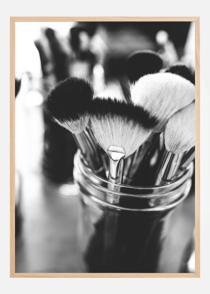 Un imprimeu artistic, dar distractiv, al unui borcan de sticlă plin cu pensule de machiaj. Acest poster izbitor alb-negru arată mai multe pensule de diferite dimensiuni. Simte cât de moi sunt aceste pensule când agăți acest imprimeu pe peretele dormitorului tău.