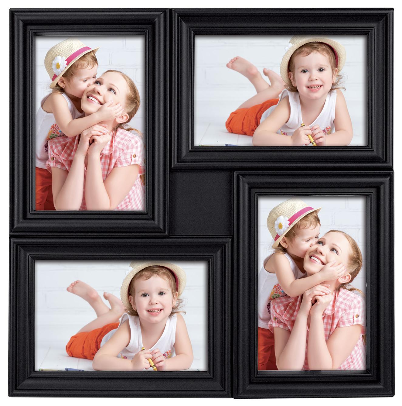 Adună-ți momentele preferate într-un singur loc, înrămându-le cu ușurință într-o ramă de colaj! Această ramă de colaj are loc pentru 4 fotografii de dimensiune 10x15 cm, 2 în format portret și 2 în format peisaj. Rama de colaj este de o nuanță elegantă de negru și este fabricată din compozit. Suport de perete inclus. Dimensiunile exterioare ale ramei sunt de 33x33 cm, iar forma pătrată conferă o alură elegantă acestei rame, transformând-o într-un tablou decorativ în casa ta!