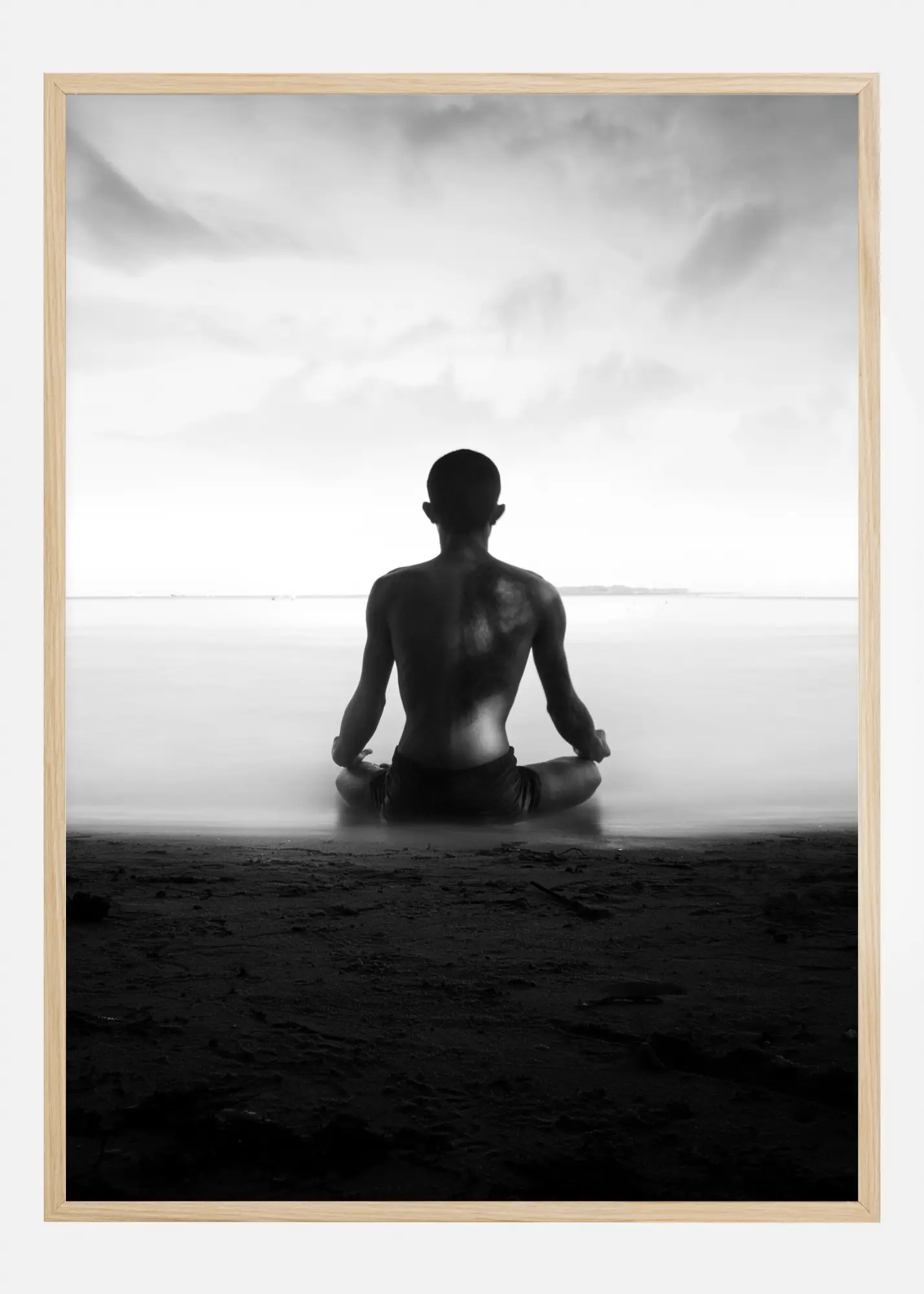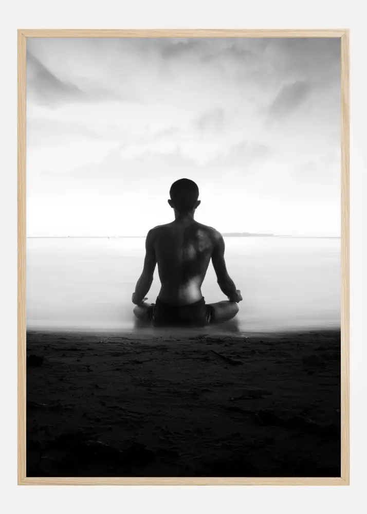 Un frumos imprimeu alb-negru al unei figuri care privește spre orizont. Așezată în poziția de yoga, aceasta este o poster perfectă pentru cei care doresc o amintire zen în casa lor. Este de asemenea perfectă pentru un studio de yoga pentru a crea o atmosferă liniștită și relaxantă.