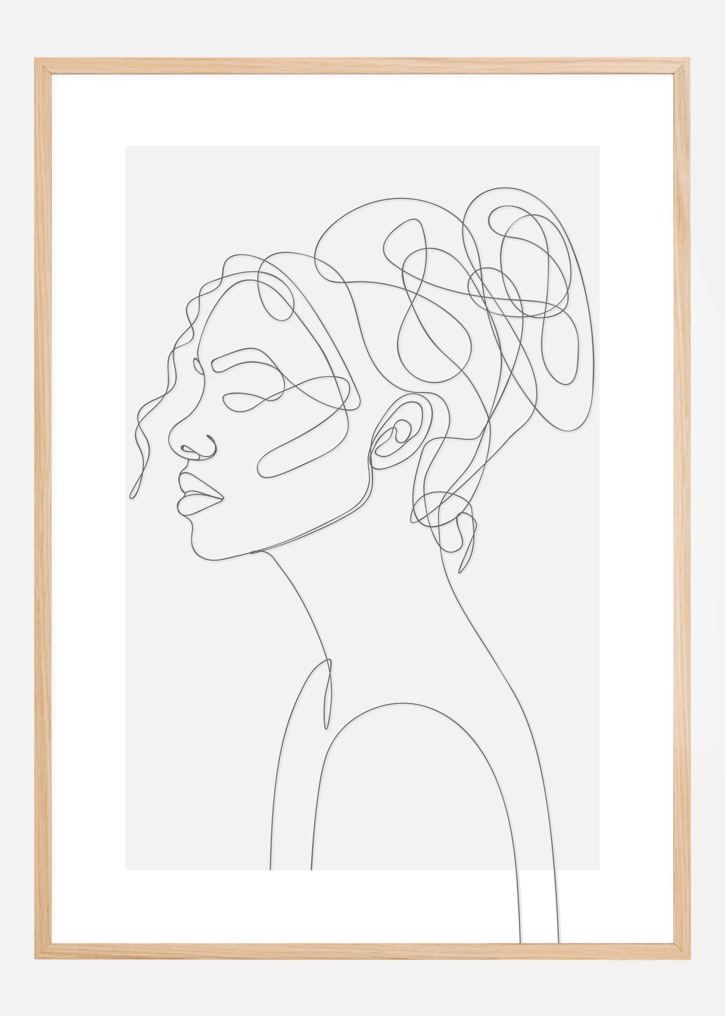 Acesta este un poster impresionant cu un bust feminin desenat, care privește spre stânga pe pânză. Părul ei creț este prins într-un nod în vârful capului. Fiecare linie curge abil către următoarea fără a lăsa vreodată impresia ca simbol al vieții modelului. Un început, un sfârșit. Un imprimeu frumos, dar misterios, pentru toate mediile.