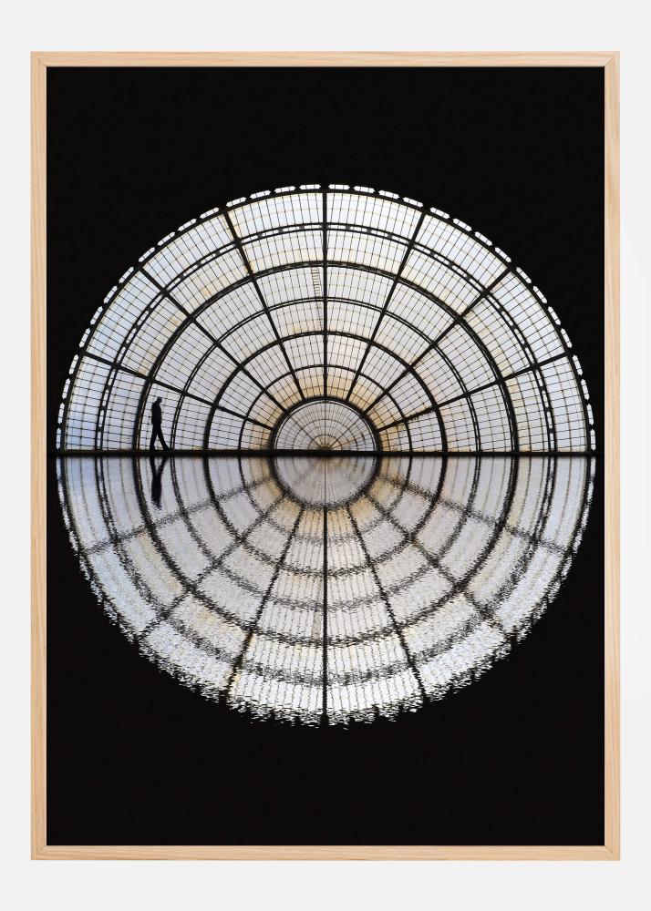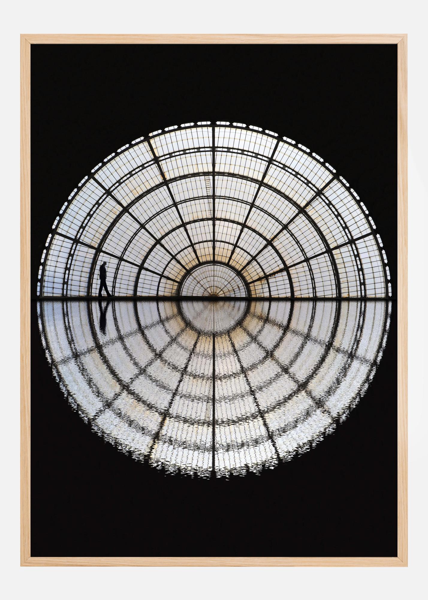 Această posteră artistică intitulată "Pietonul de la miezul nopții" surprinde o figură singuratică care se plimbă sub o cupolă impresionantă de plasă luminoasă, creând o senzație de măreție și izolare. Contrastul vizual între noaptea întunecată și plasa strălucitoare dă viață motivului, iar privitorul poate simți liniștea tăcută a plimbării solitare.