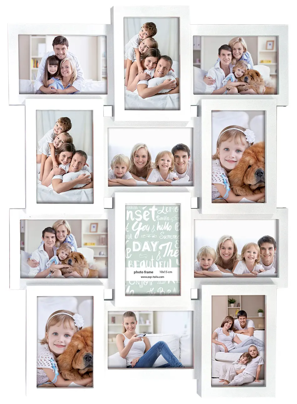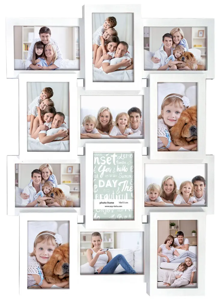Imortalizează mai multe dintre cele mai frumoase amintiri ale tale și adună-le în această ramă! Această ramă de colaj poate conține până la 12 imagini de dimensiunea 10x15 cm, atât pe verticală, cât și pe orizontală. Dimensiunile exterioare ale ramei sunt de 46x60 cm. Suport de perete inclus. Designul elegant al ramei permite motivelor tale să strălucească și se poate asorta frumos cu alte decorațiuni de perete. Ramele diferite din colaj sunt fixate la adâncimi diferite, creând un efect 3D și transformând această ramă de colaj într-un design atrăgător.