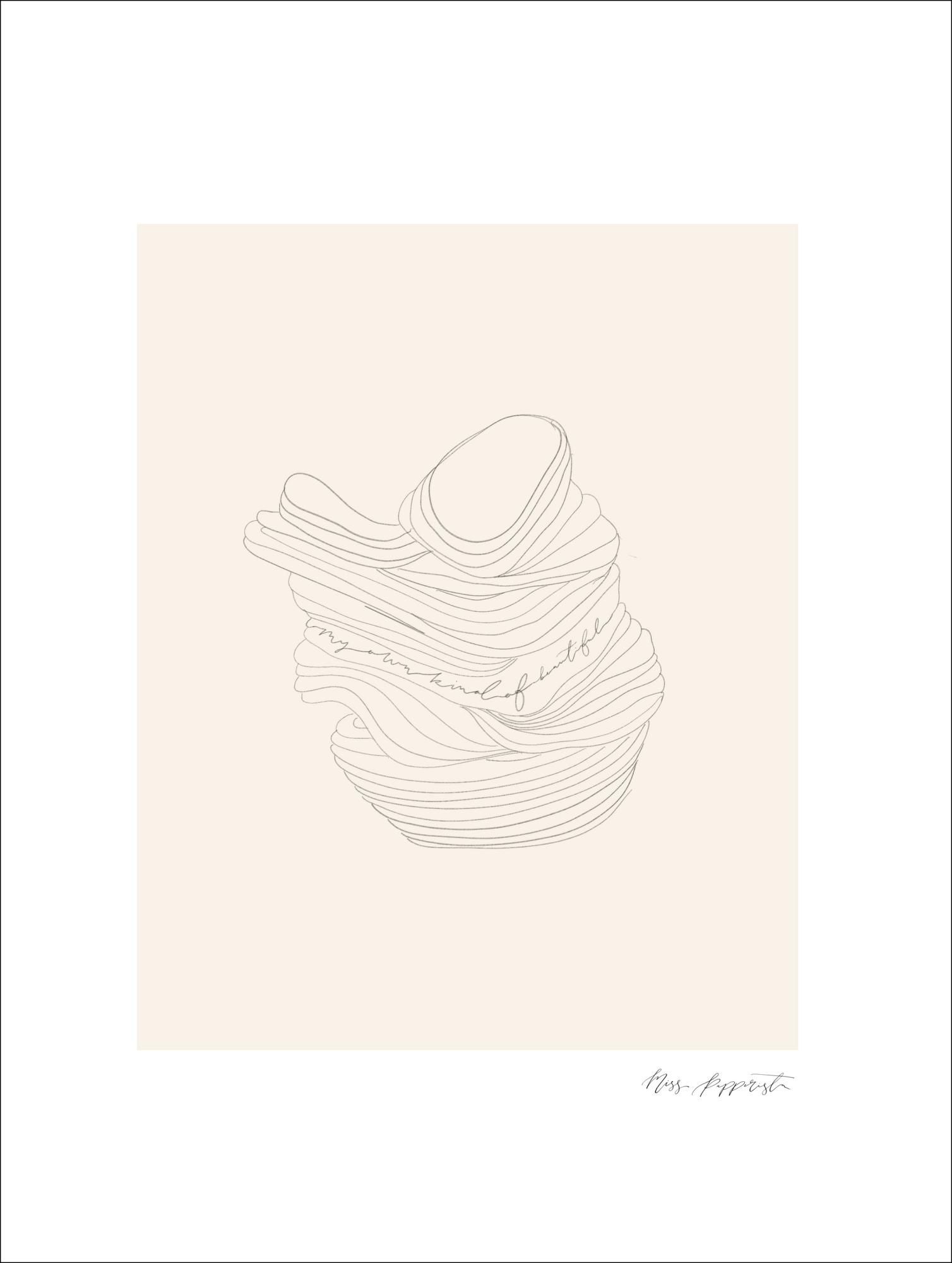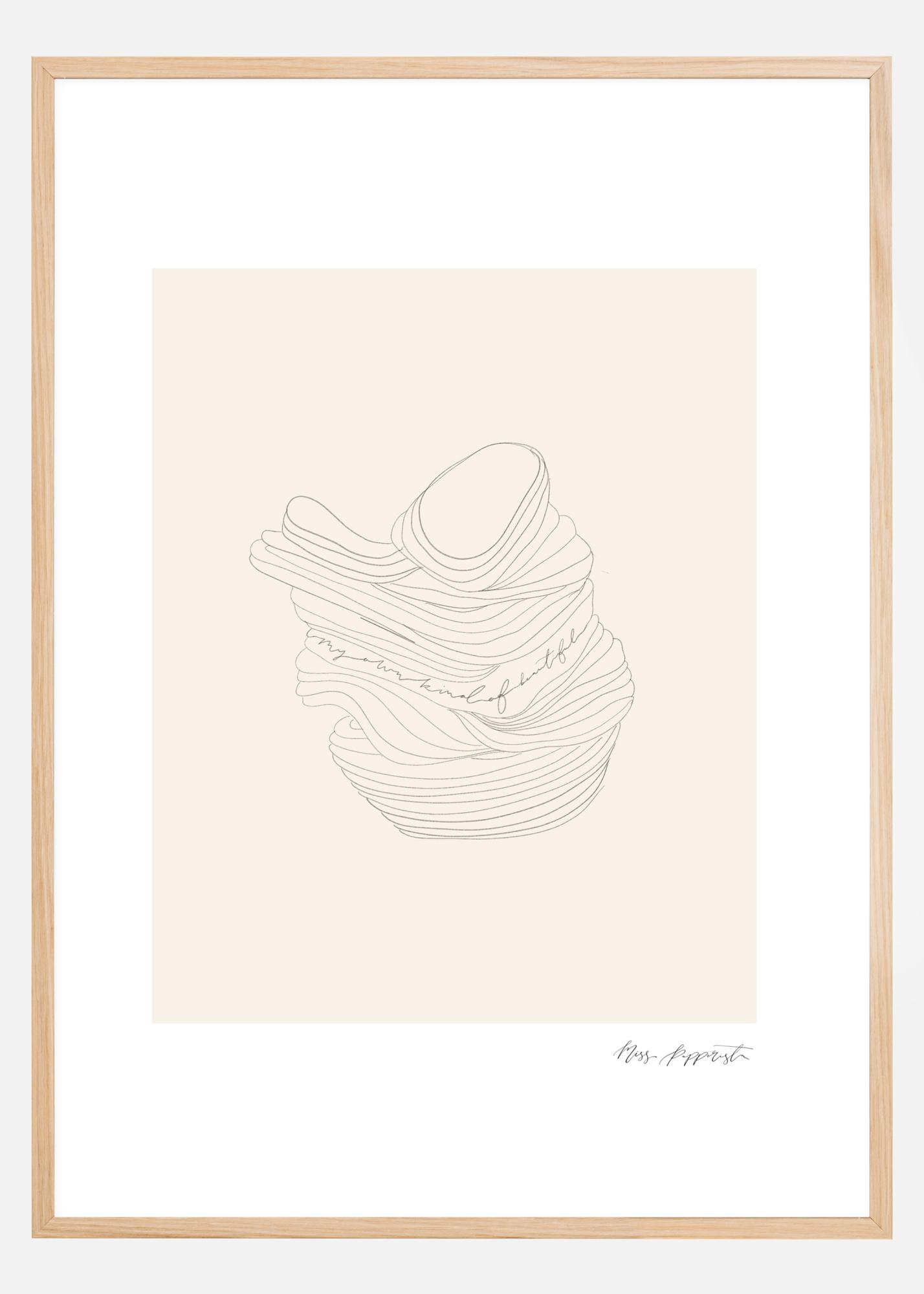 Un desen interesant al obiectelor stivuite. Un fundal de culoare bej atrage privirea către bolul canelat din imagine. Un poster perfect pentru a începe o conversație. Agăță acest poster în sufrageria ta și încearcă să îți dai seama ce sunt obiectele stivuite.