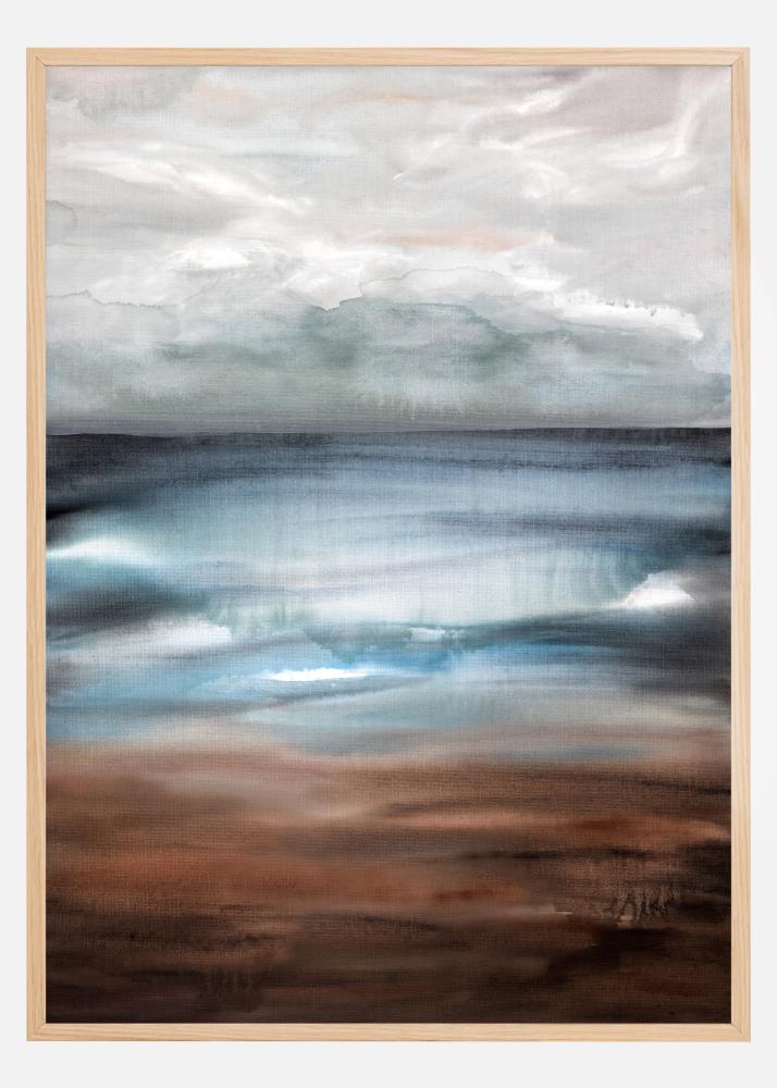 O reprezentare relaxantă a unei zile noi. Culorile pastelate moi arată dimineața înnorată cu ceață peste mare. Orizontul se contopește perfect cu norii gri și albi. Cu acest poster relaxant și liniștitor pe perete, poți aproape să auzi marea.