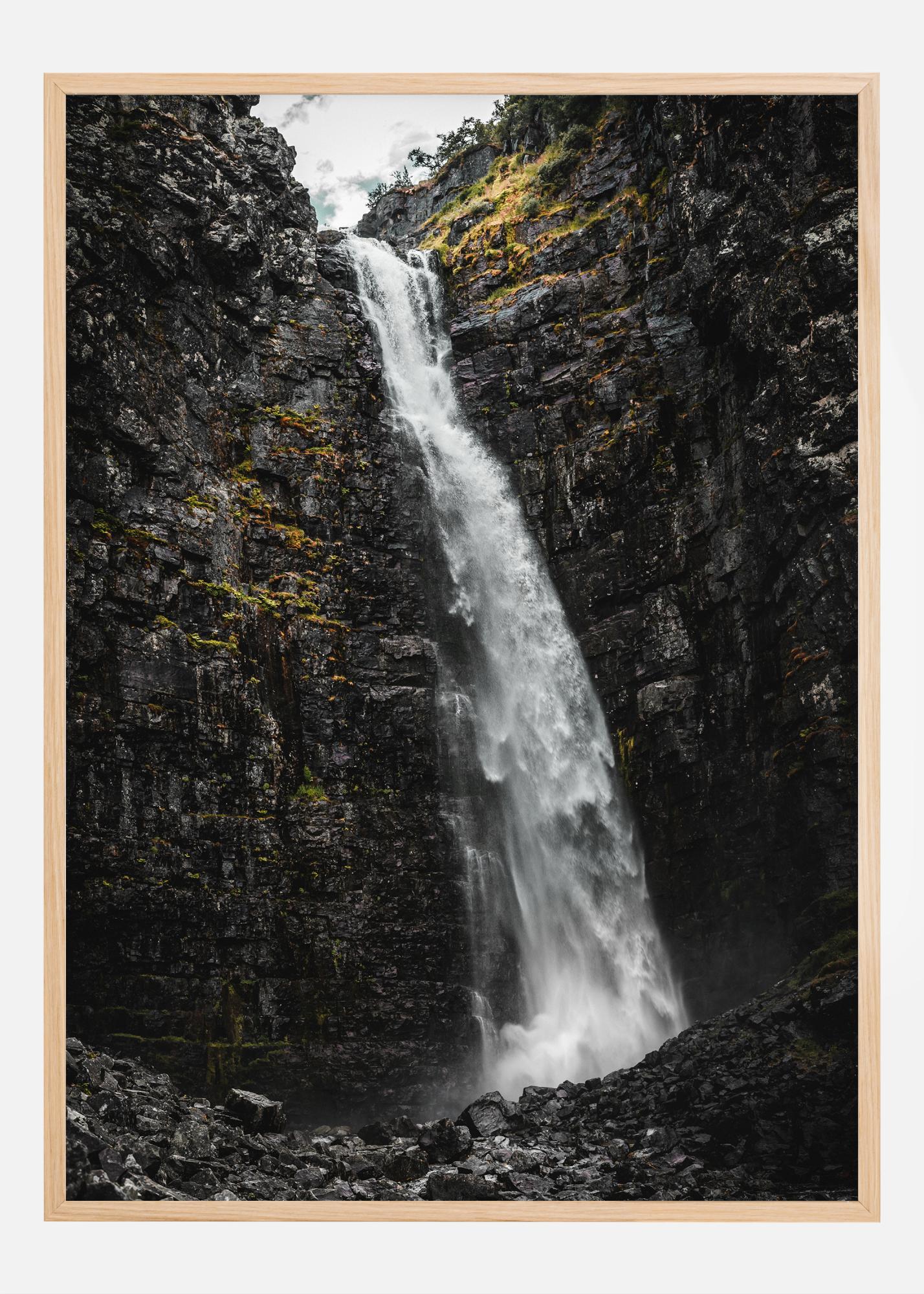 Această posteră sugestivă înfățișează Njupeskär, cea mai înaltă cascadă din Suedia, curgând dramatic pe o stâncă acoperită de pietre. Printul arată mișcarea puternică a cascadei și apa rece, clară, care se lovește de stâncile de dedesubt. Cascada este înconjurată de stânci întunecate, aproape negre, care contrastează cu spuma albă, în timp ce o vegetație moale se agață de suprafețele stâncilor. Aceasta este o afiș care oferă un sentiment al forței și frumuseții brute a naturii și este un adaos ideal pentru oricine apreciază minunile naturii.