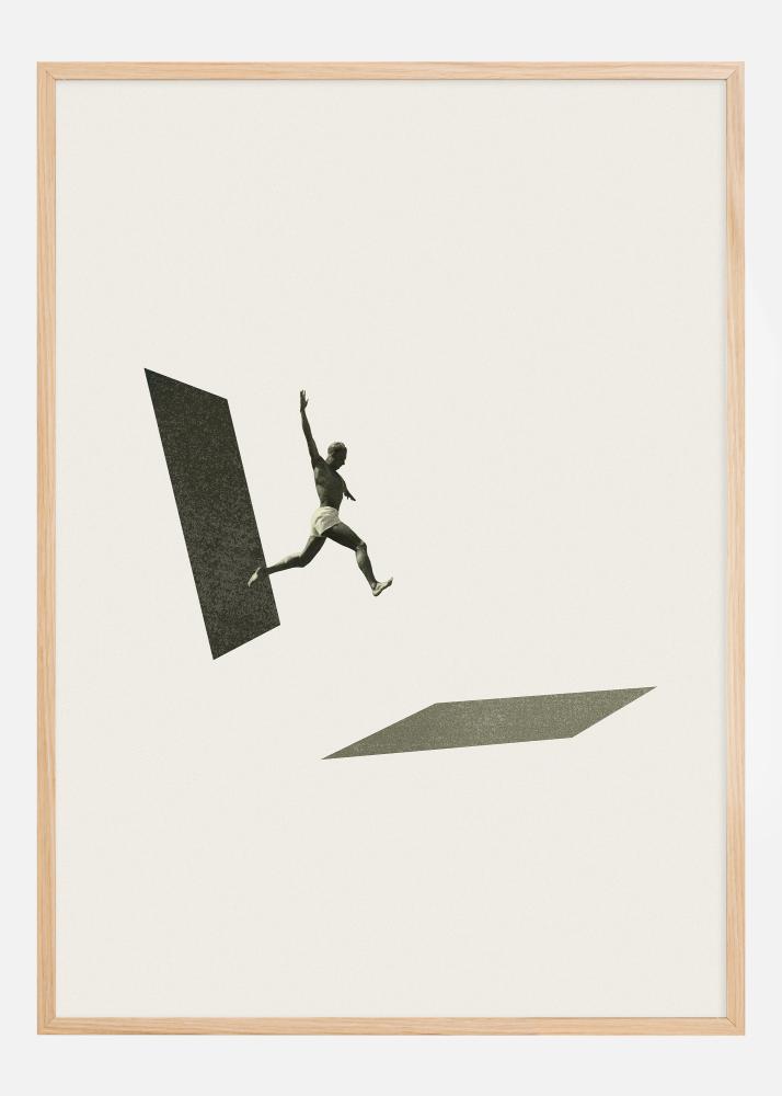 Designul minimalist, cu liniile sale curate și paleta limitată de culori în tonuri neutre, evidențiază simplitatea acțiunii și mișcarea figurii. Acesta este un poster care inspiră observatorul să îndrăznească să-și asume riscuri și să nu rămână pe loc, ceea ce îl face un adaos perfect în spațiile de lucru, camerele de studiu sau alte medii în care motivația și forța de acțiune sunt trăsături valoroase.