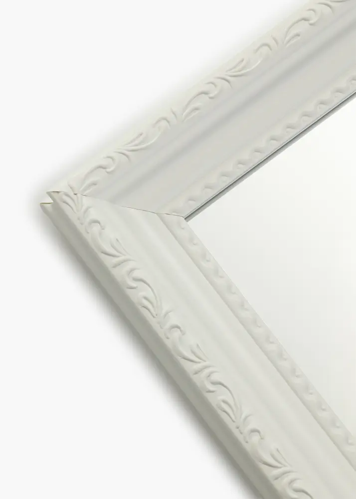 O oglindă albă devine un detaliu proaspăt în fiecare casă, iar acest model adaugă multă eleganță! Oglinda este fabricată din compozit și are un geam de oglindă tradițional, fără culoare. Cadrul de 25 mm lățime are un profil frumos modelat, care oferă o impresie foarte stilată.