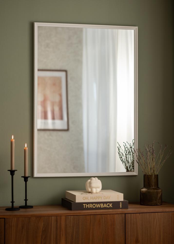 Această oglindă de perete are suporturi practice care permit agățarea atât pe orizontală, cât și pe verticală. Se potrivește la fel de bine singură pe perete ca și împreună cu alte oglinzi într-un perete de oglinzi. Sau de ce să nu folosiți oglinda ca un element captivant într-un perete cu tablouri?