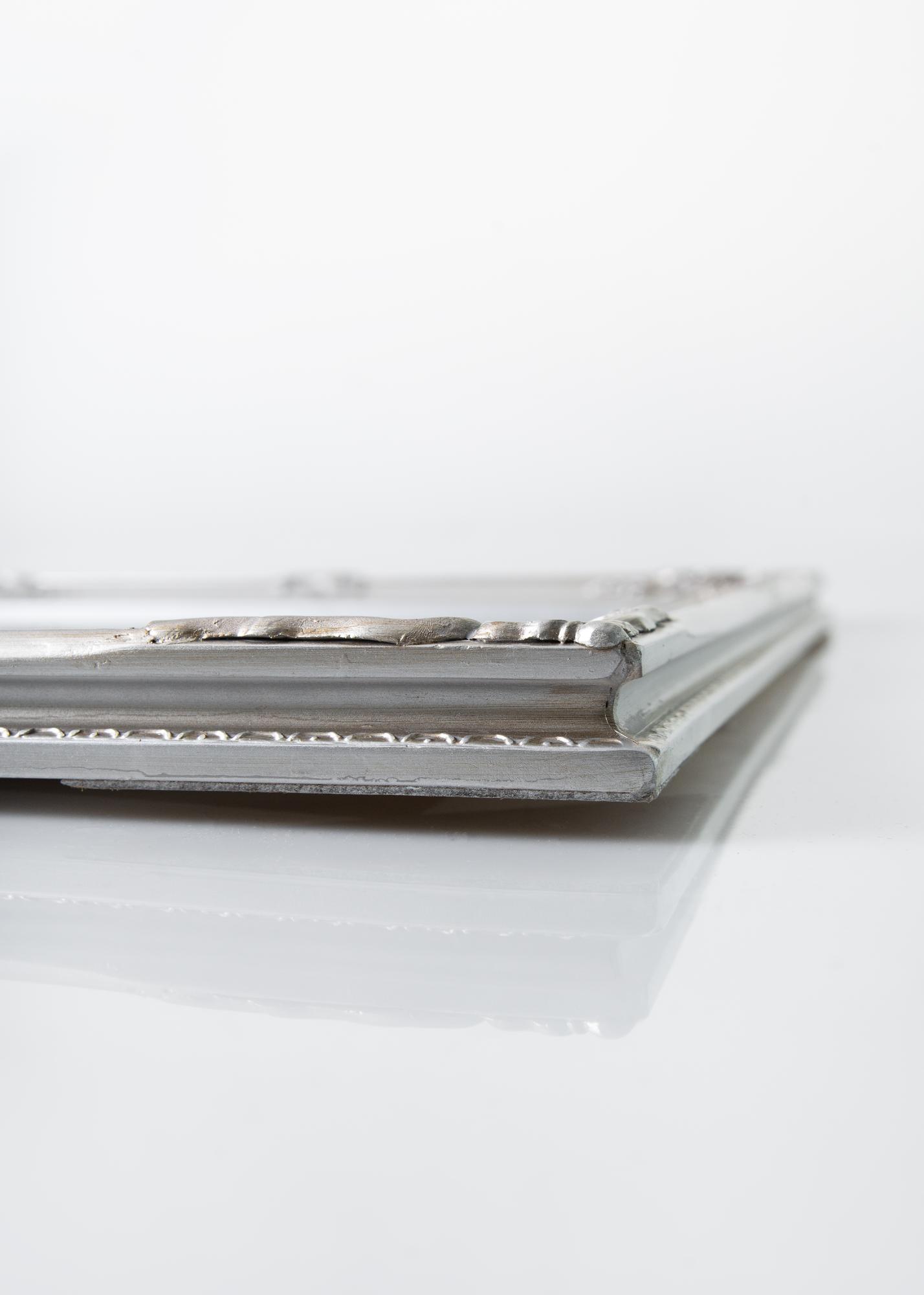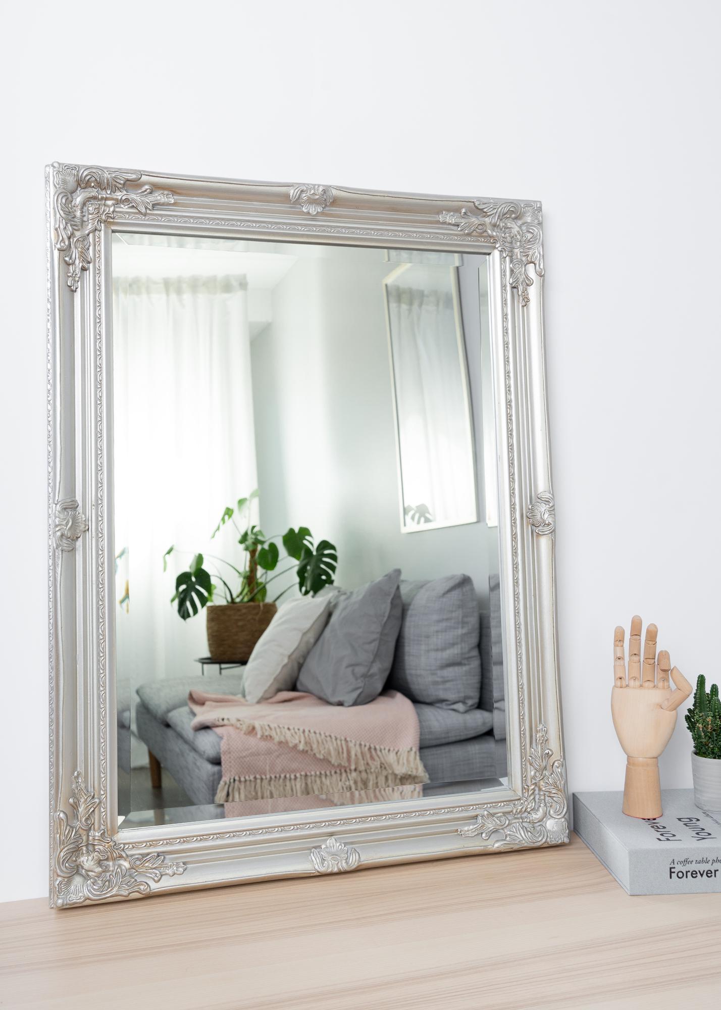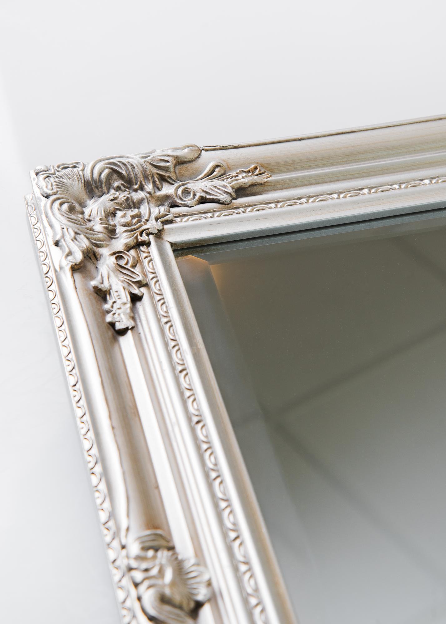 Oglinda Antique Silver este o oglindă de perete cu un format și formă tradițională. Are o ramă din lemn cu un decor clasic frumos proiectat, turnat în ghips și apoi aplicat pe ramă. Această ramă face ca oglinda să fie un ornament frumos care va atrage privirile.