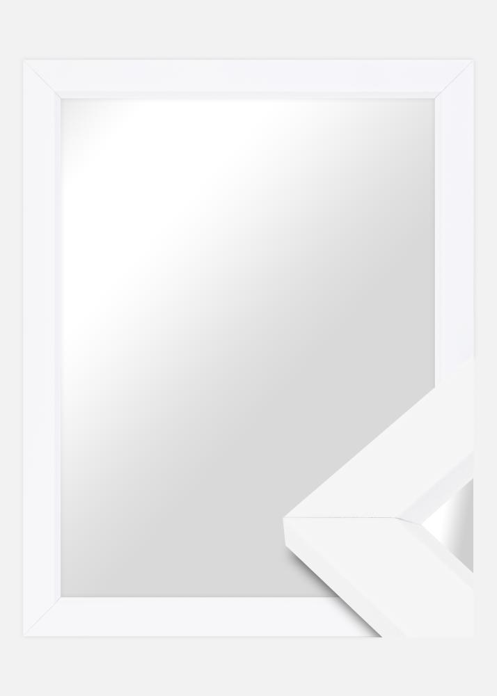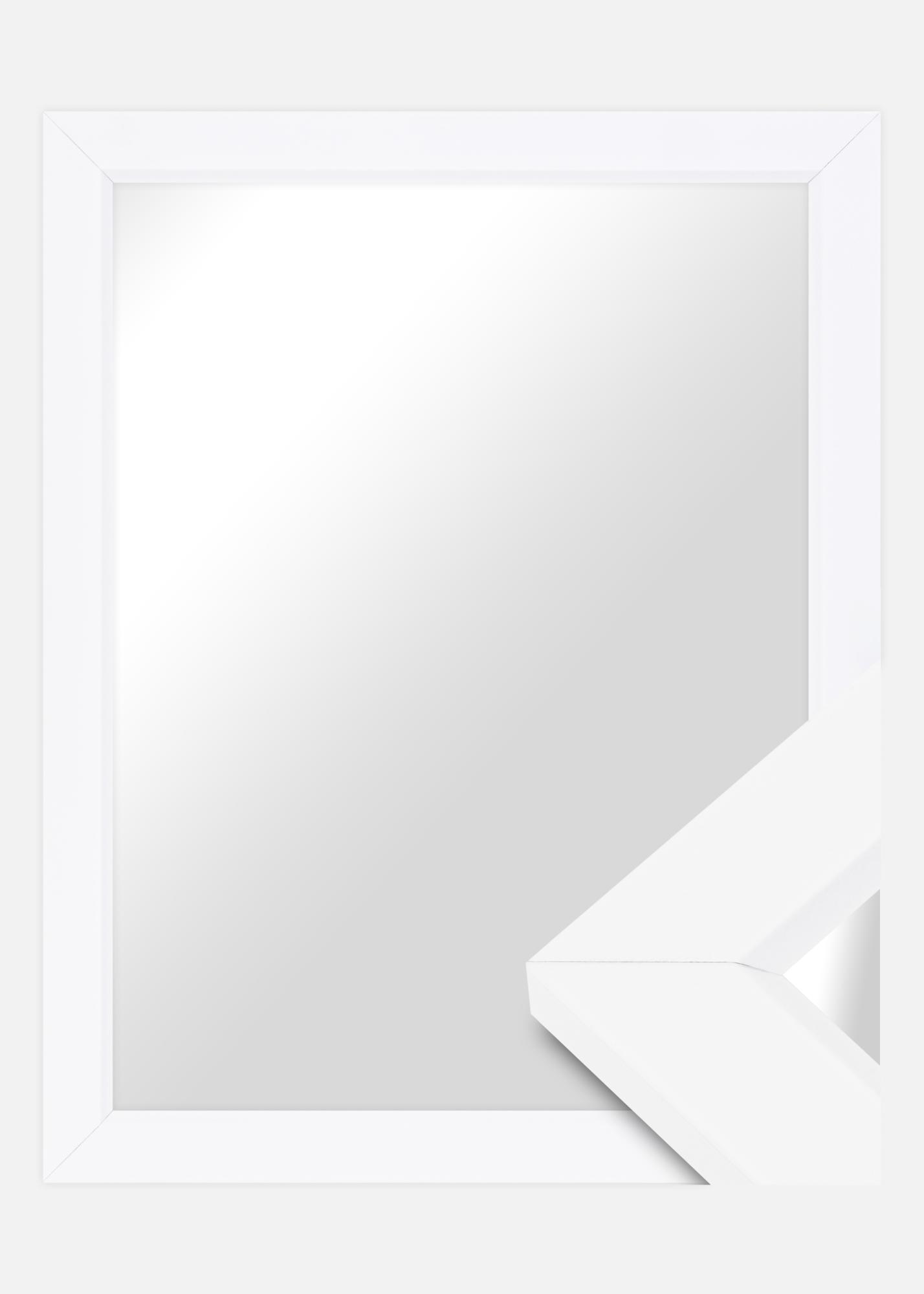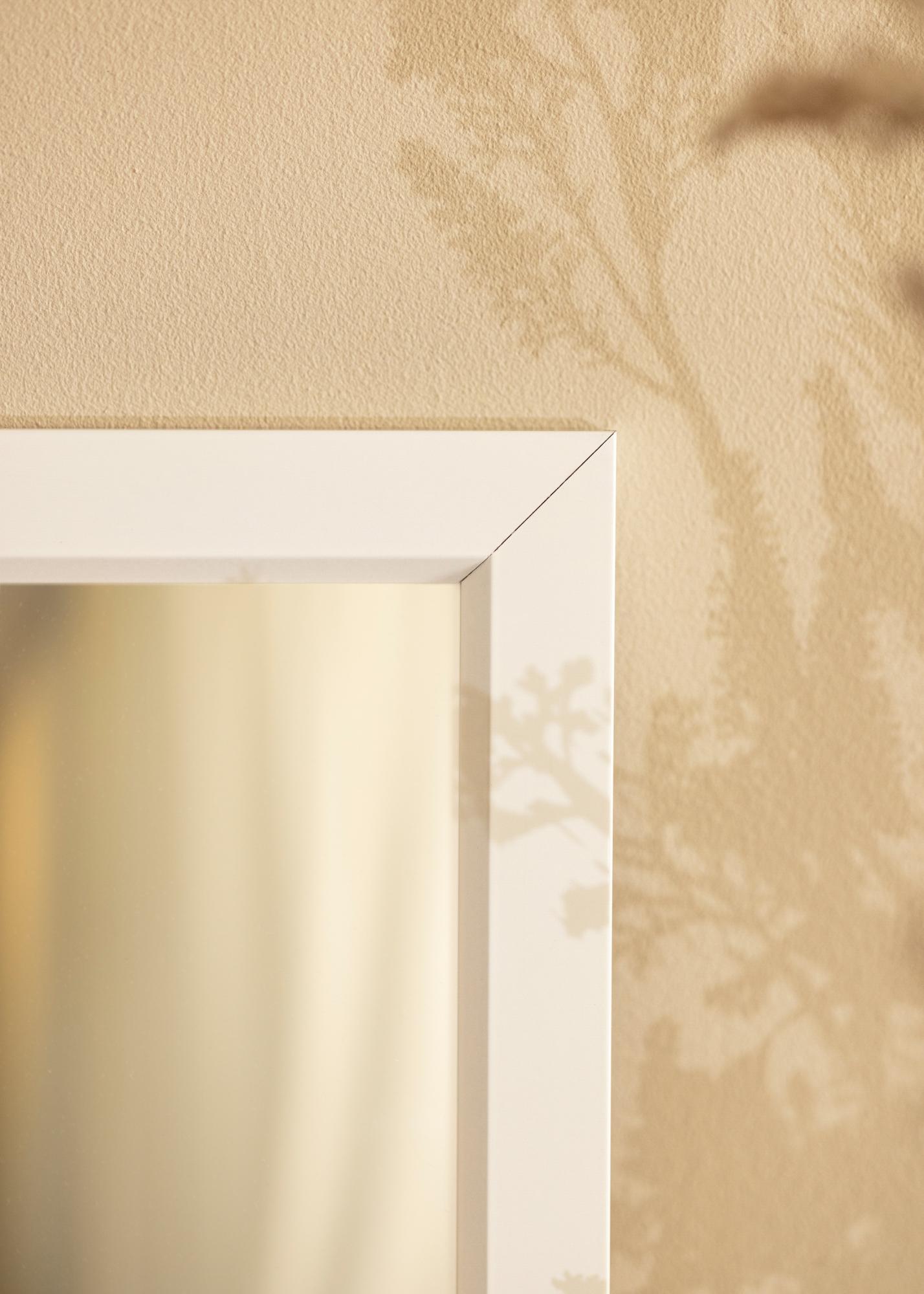 Oglindă elegantă cu o ramă simplă albă fabricată din aluminiu, care are un colț interior teșit. Aspectul elegant și suplu al ramei face ca oglinda să se potrivească bine în orice cameră a casei, indiferent de stilul de decor, dar arată deosebit de bine într-un interior luminos cu o tendință către minimalism. Combină cu plăcere oglinda cu postere grafice în rame albe pe pereți și obiecte de sticlă ca accesorii pentru a crea o senzație luminoasă și aerisită în decor.