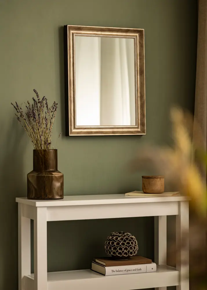Oglindă de lux în orice dimensiune cu un profil clasic argintiu. O oglindă largă care se potrivește aproape cu toate tipurile de motive și medii.
