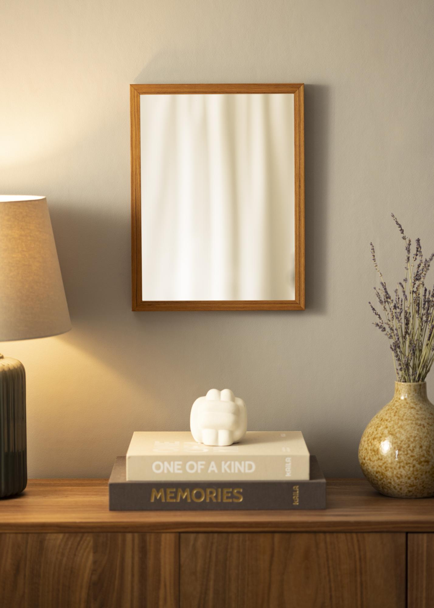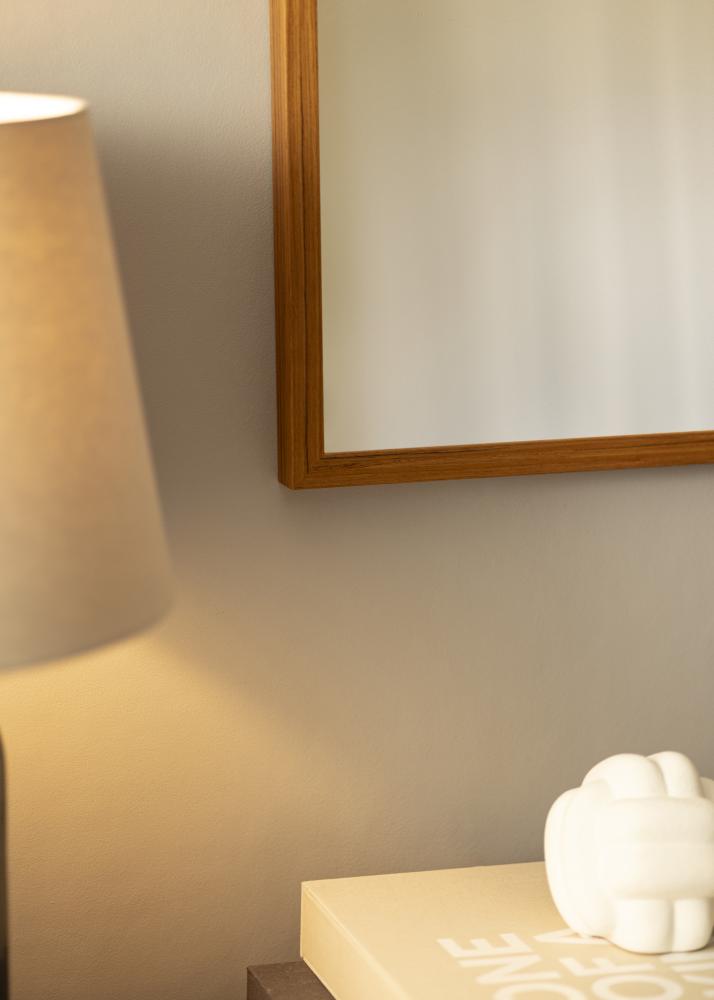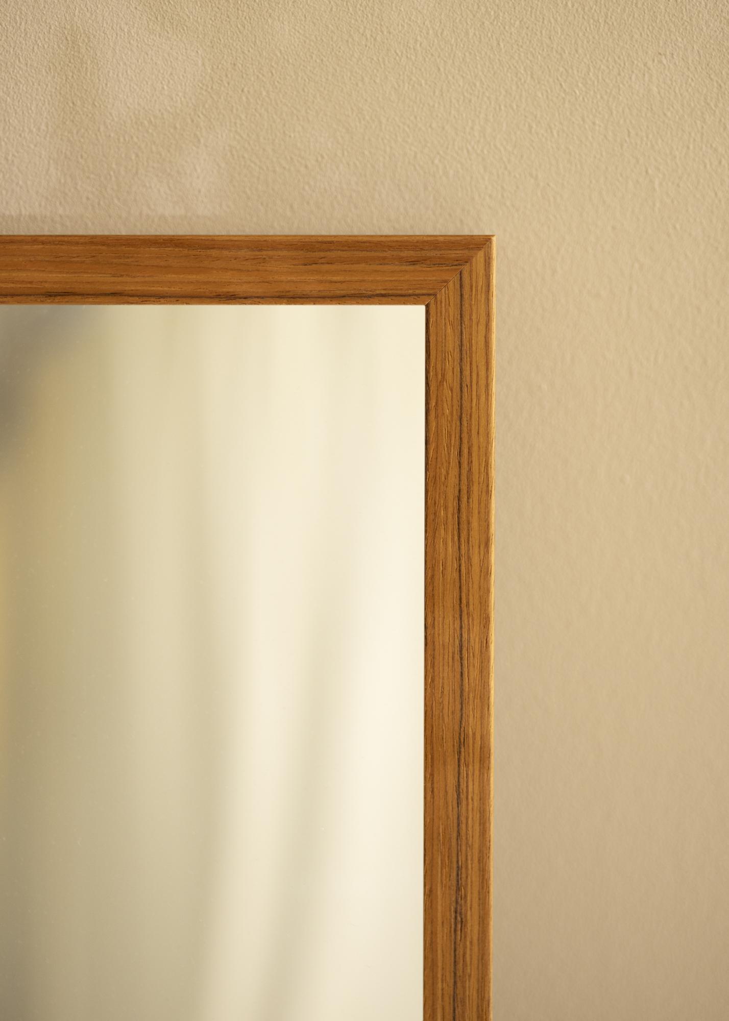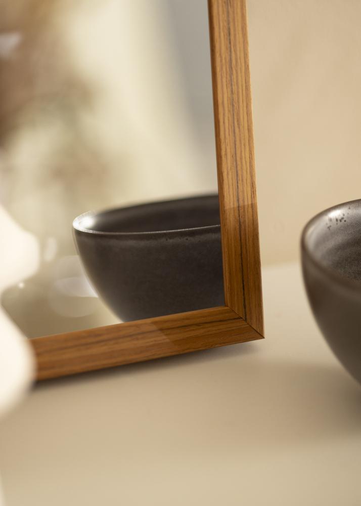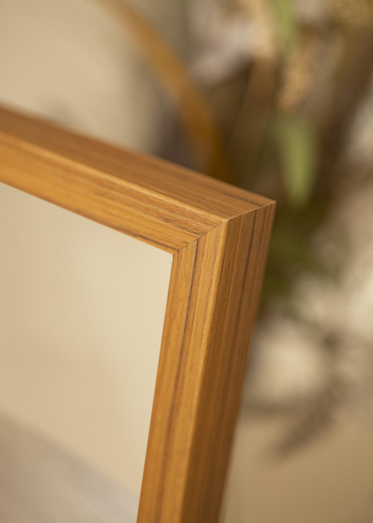 Ai redescoperit mobila din lemn de tec sau tocmai ai descoperit farmecul lor? Această oglindă elegantă din tec adaugă o notă retro plăcută casei tale. Devine deosebit de atrăgătoare dacă o amplasezi lângă un alt element decorativ din tec, dar funcționează și ca un element interesant deasupra lavoarului. Deoarece este realizată de personalul calificat din propriul nostru atelier de rame, te poți aștepta la o oglindă frumoasă de înaltă calitate!