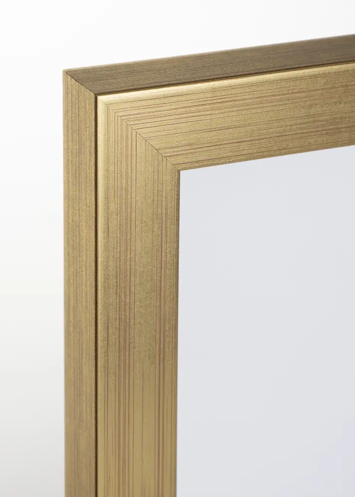 Rama de culoare aurie conferă oglinzii un sentiment elegant și luxos care se potrivește în majoritatea stilurilor de decorare interioară. Rama are 20 mm lățime și o adâncime de 20 mm, ceea ce oferă oglinzii o construcție stabilă și robustă. Fabricată din lemn de pin, care este foliat, oglinda combină durabilitatea cu un design elegant.