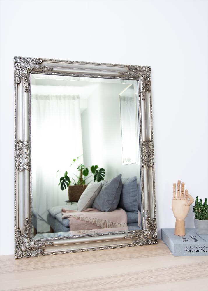 Seria de oglinzi Bologna Argint are un design latin cu decorațiuni bogate la colțuri și la punctele de mijloc ale laturilor ramei. Rama este puțin mai îngustă decât la multe alte oglinzi în acest stil. Rama este fabricată din lemn, iar decorațiunile au fost turnate în ghips înainte de a fi aplicate pe ramă.