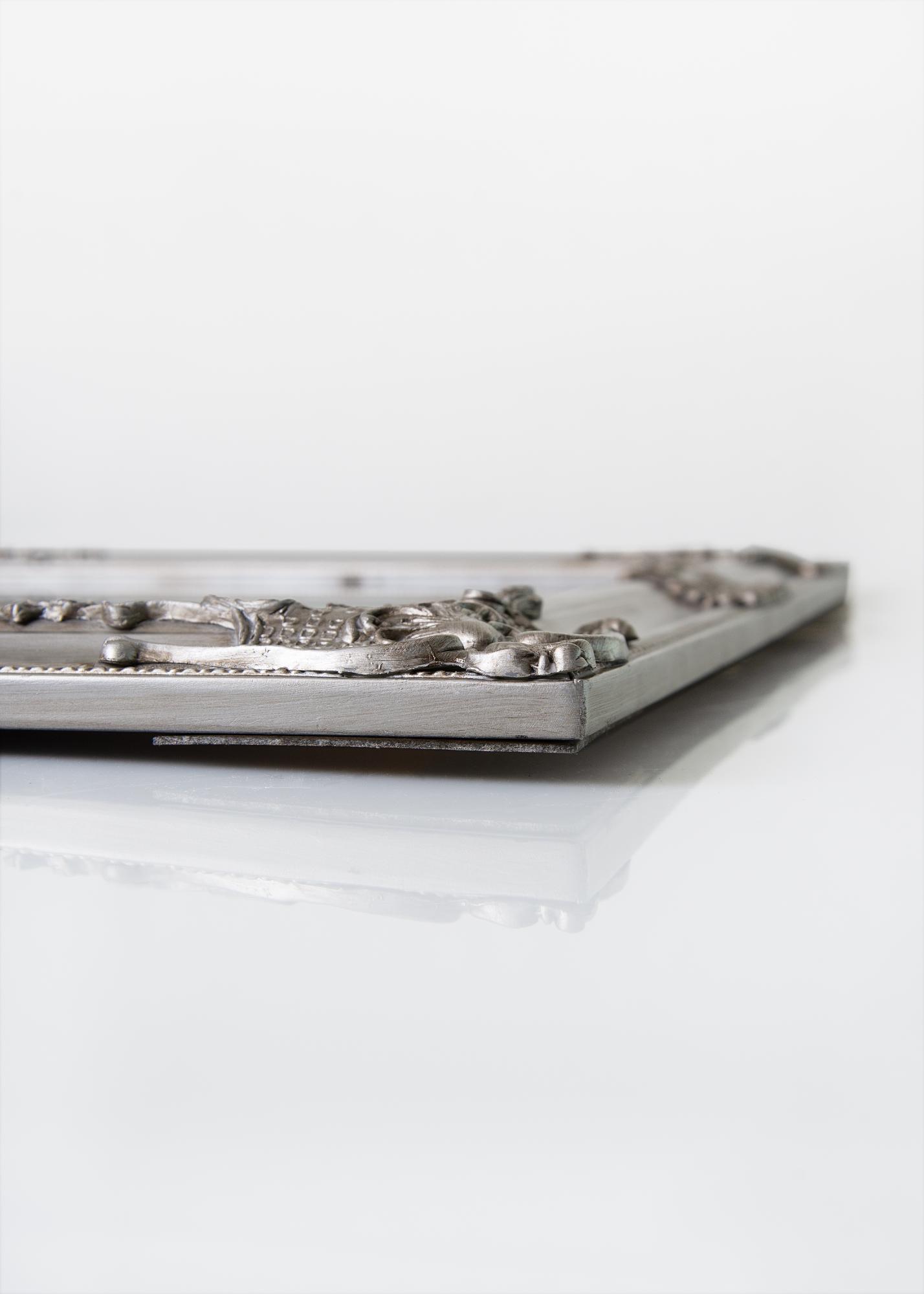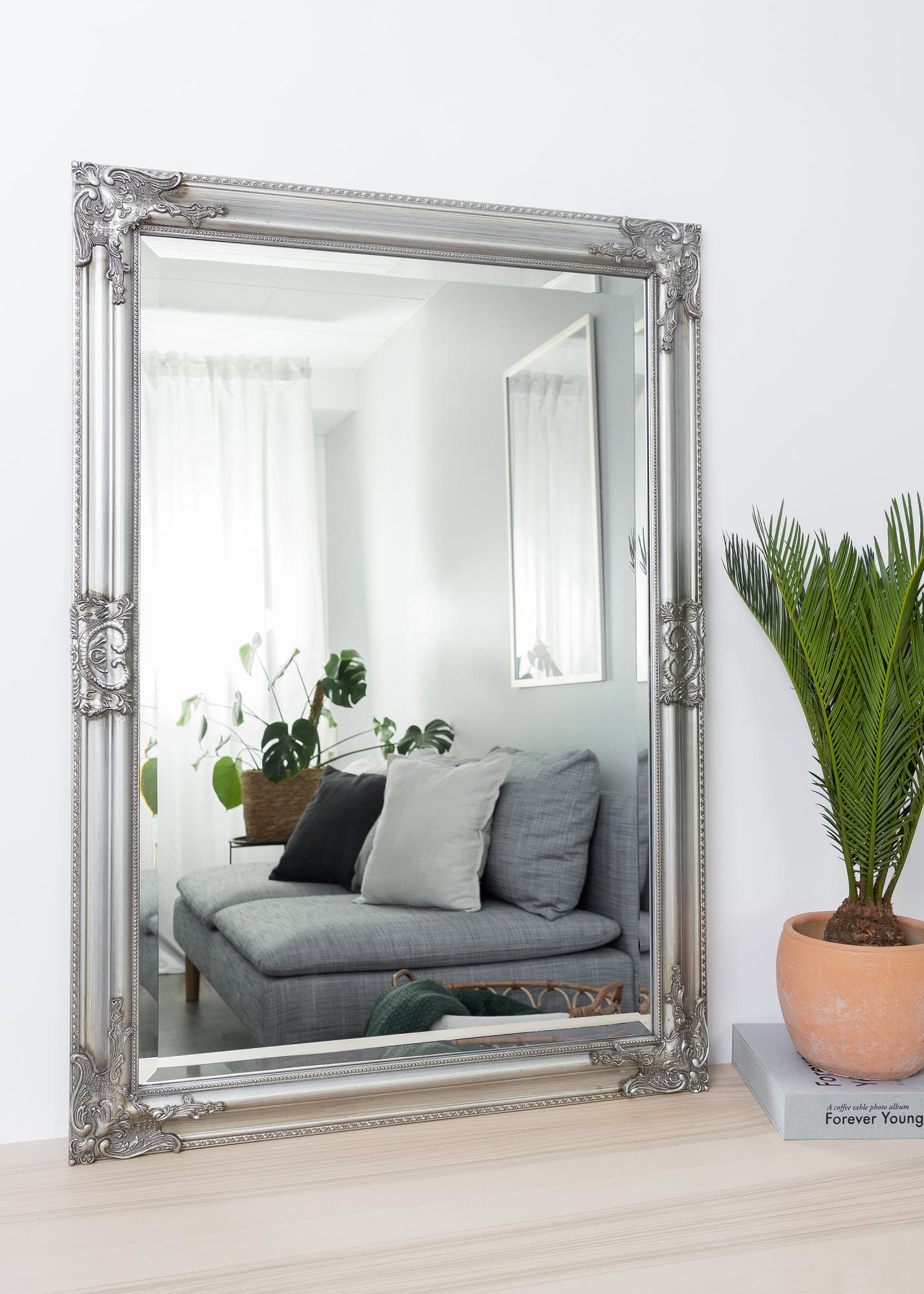 Seria de oglinzi Bologna Argint are un design latin cu decor bogat în colțuri și la punctele centrale ale marginilor ramei. O ramă puțin mai îngustă decât multe alte oglinzi în acest stil. Rama este fabricată din lemn, iar decorul a fost turnat în ghips înainte de a fi aplicat pe ramă.