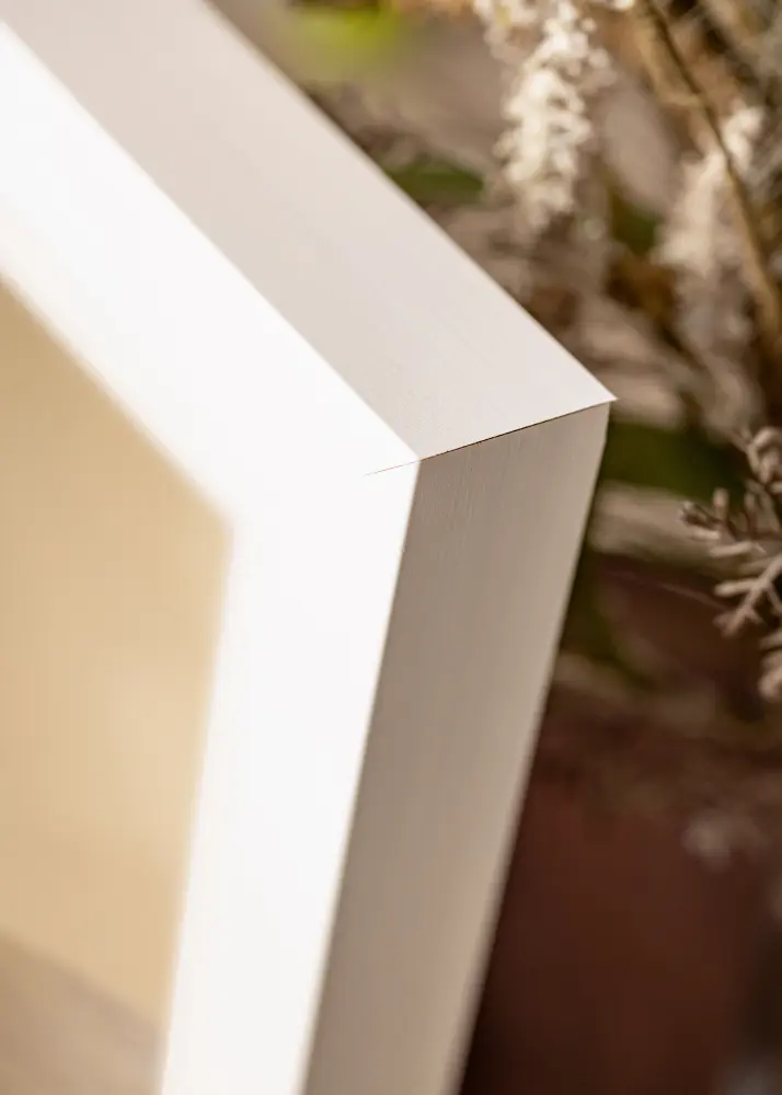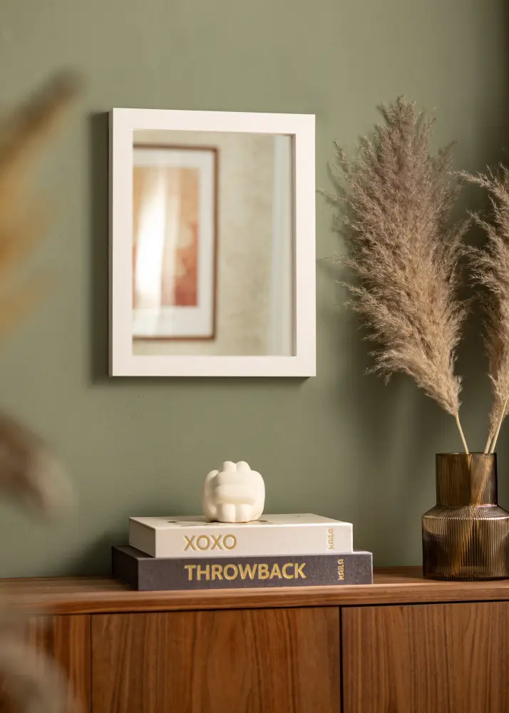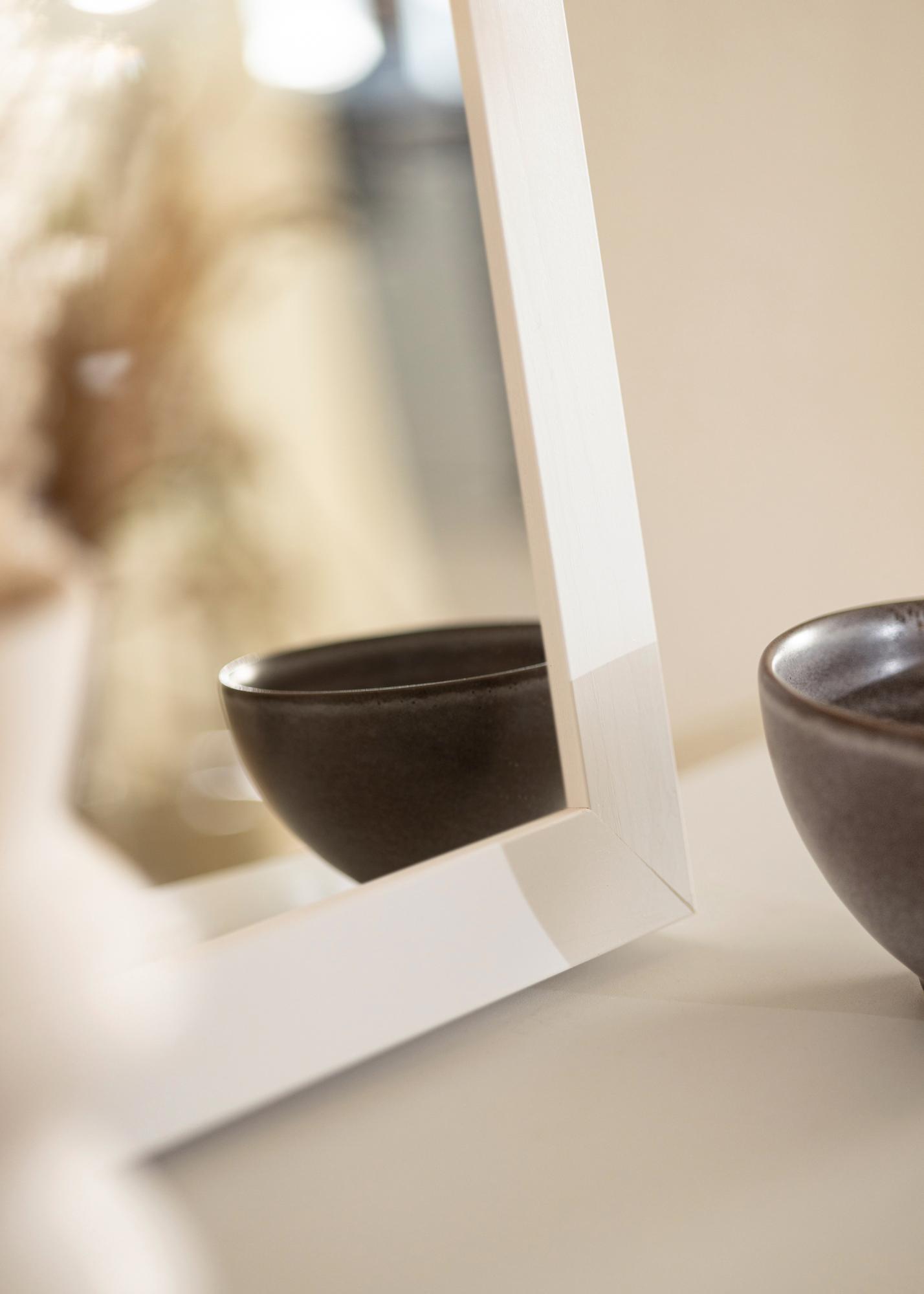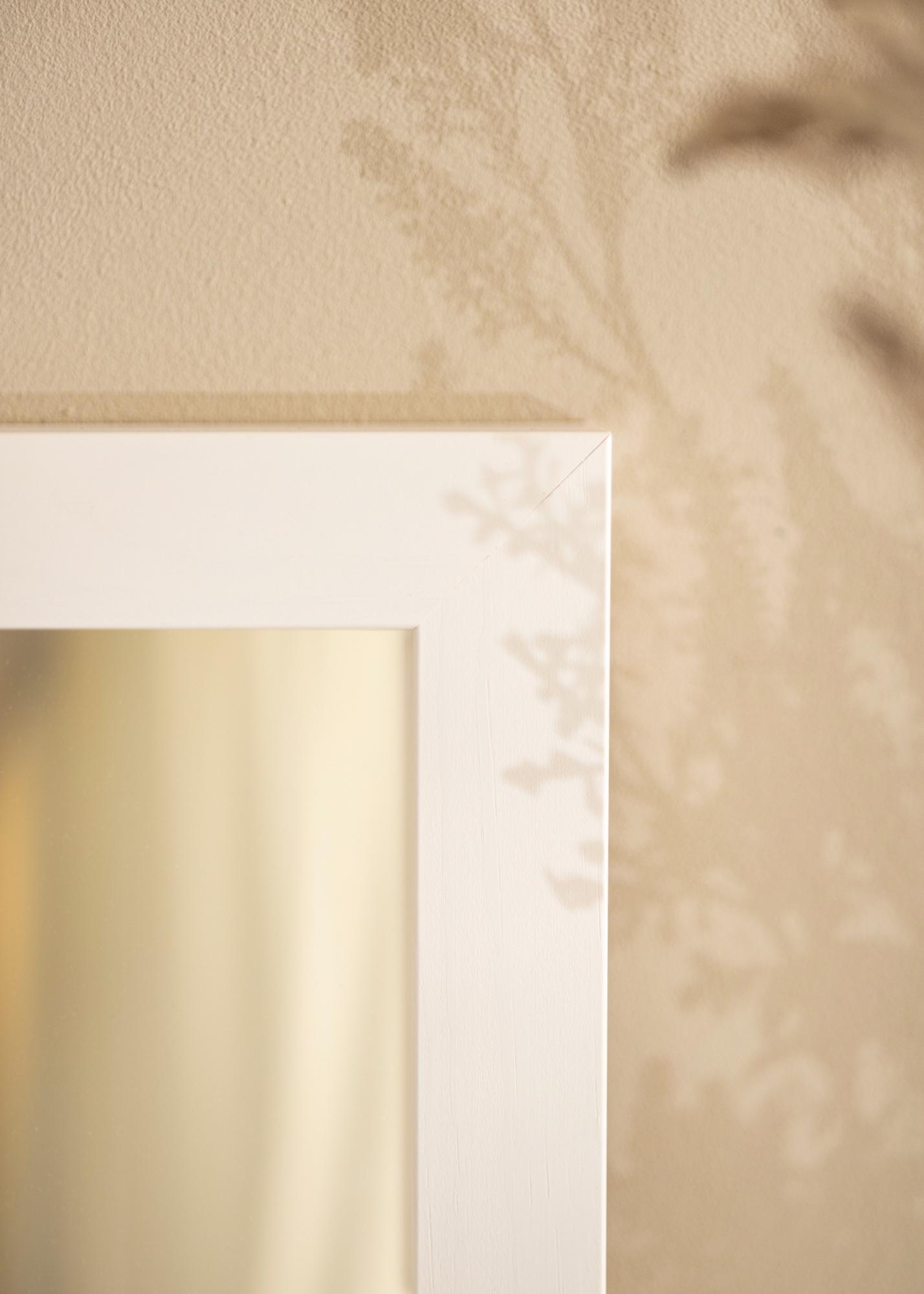 Cadru de brad fabricat în Finlanda, care este vopsit în alb direct pe lemn pentru o senzație mai autentică de lemn. "Boxholm Alb" are o adâncime de 43 mm, ceea ce face ca oglinda să iasă puțin de pe perete, creând un efect 3D atrăgător.