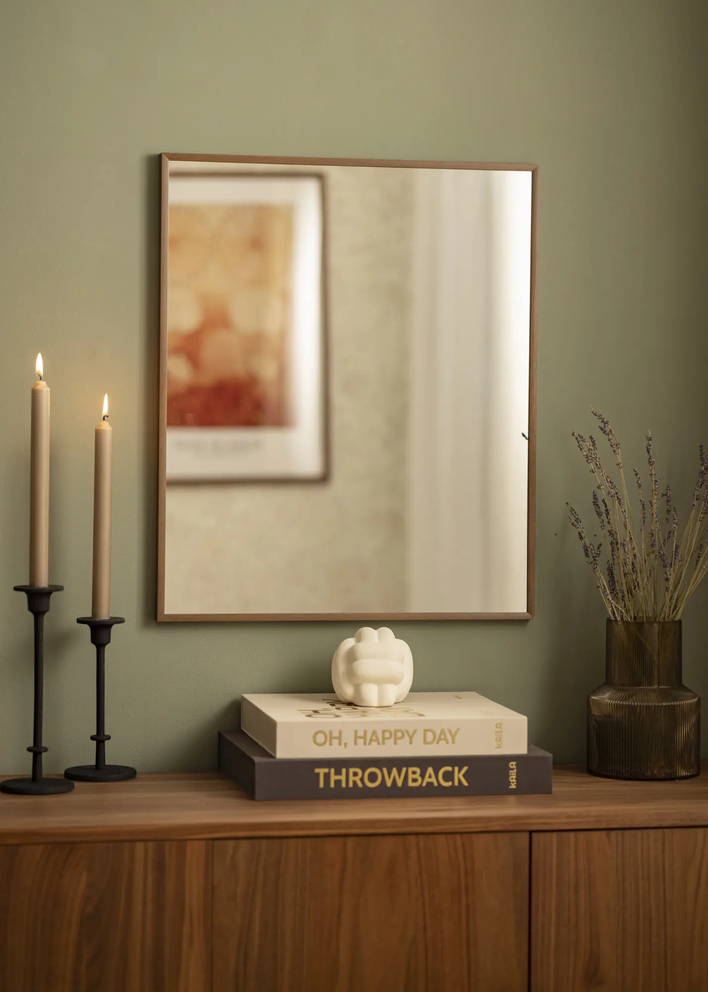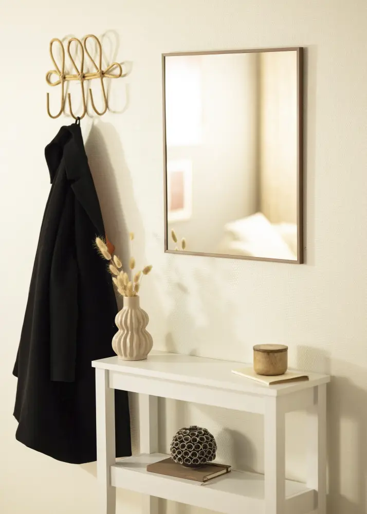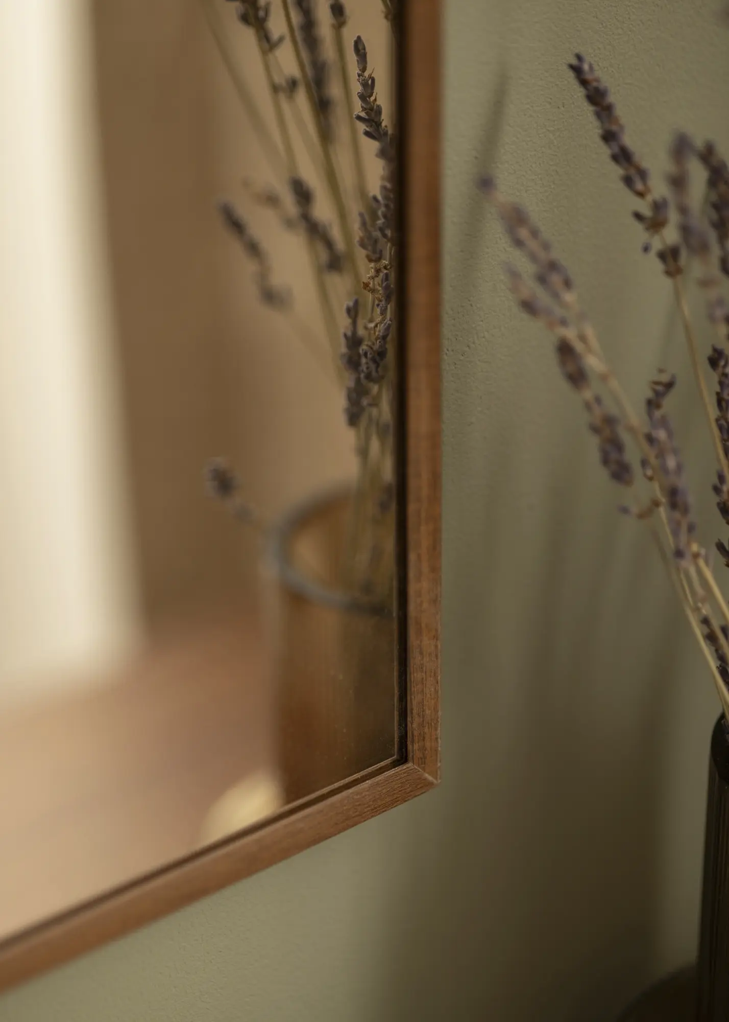 Această oglindă de perete este o combinație perfectă de stil și funcționalitate. Rama este fabricată din aluminiu și are doar 10 mm lățime, ceea ce oferă o expresie elegantă și minimalistă. Oglinda face parte dintr-o serie de oglinzi de perete în diferite culori și dimensiuni, dintre care aceasta este o variantă de culoare lemn, cu dimensiunea de 51,1x61,1 cm.