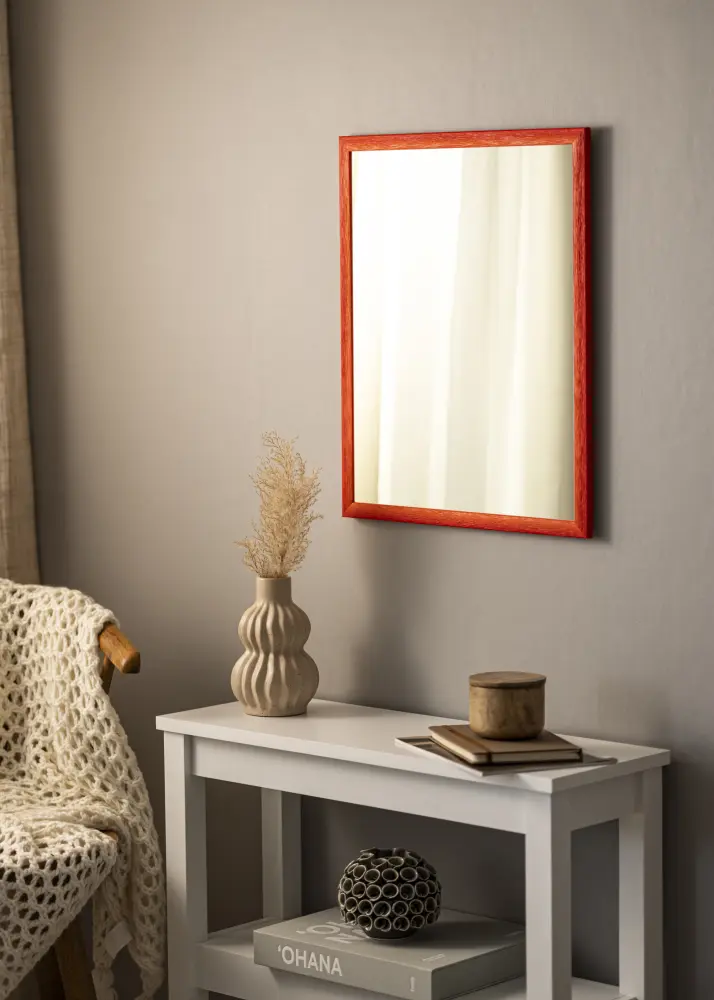 Cu o adâncime de 13 mm, oglinda are un profil îngust care îi accentuează caracterul elegant. Acest design permite oglinzii să fie integrată cu ușurință în diferite tipuri de decoruri fără a domina încăperea. Indiferent dacă o așezați în hol, dormitor sau living, Oglindă Cornwall Roșie va adăuga o notă de eleganță și culoare.
