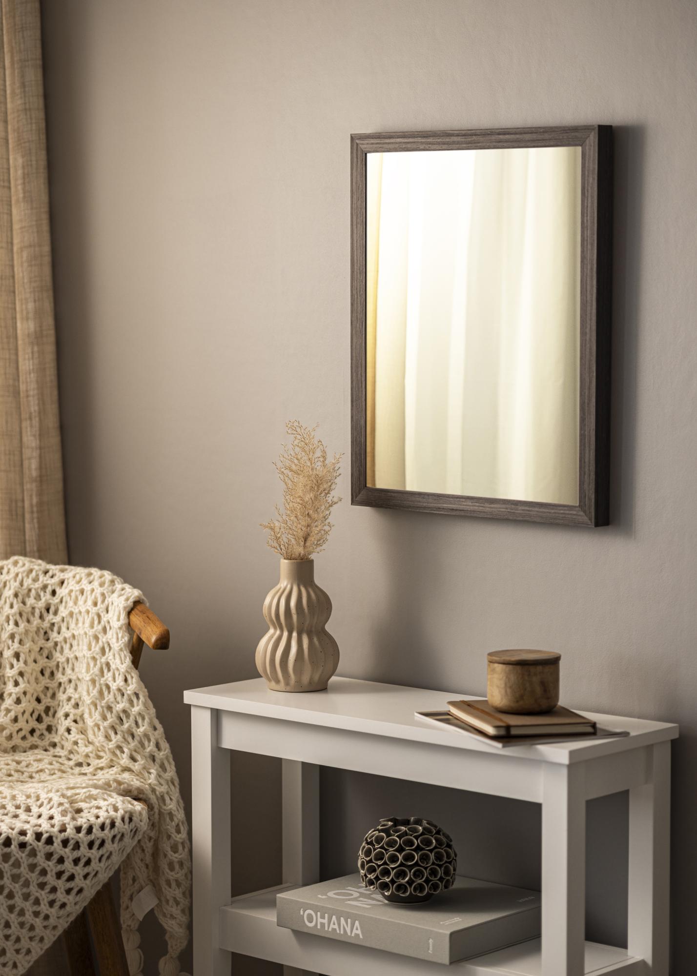 Rama are un design minimalist fără elemente decorative, ceea ce face ca aceasta să poată fi combinată cu ușurință cu alte mobilier și decorațiuni. Acest lucru face ca oglinda să fie o alegere flexibilă pentru medii clasice cât și moderne. Alegând propriile dimensiuni poți asigura că oglinda se potrivește perfect în locul în care ai gândit-o, făcând-o o alegere practică și stilată pentru orice cameră.