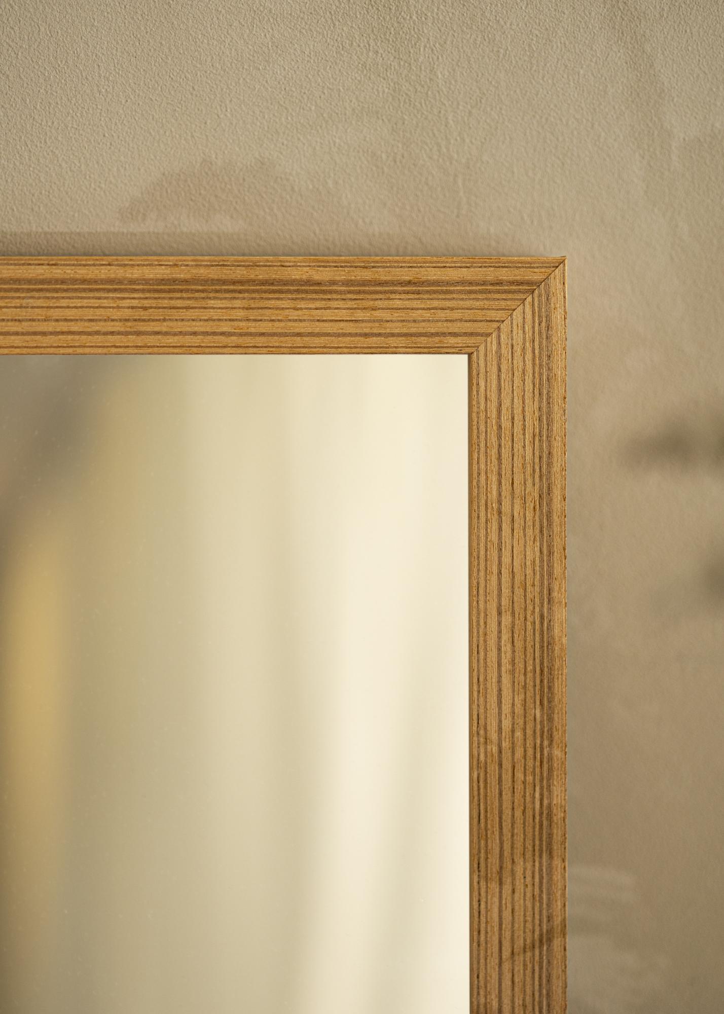 Rama oglinzii are o lățime de 28 mm și o adâncime de 33 mm, oferind o senzație stabilă și robustă. Fabricată din pin, această oglindă oferă o durabilitate care durează în timp. Structura pronunțată a ramei creează o adâncime vie și oferă o dimensiune tactilă care face ca oglinda să pară vie și dinamică.