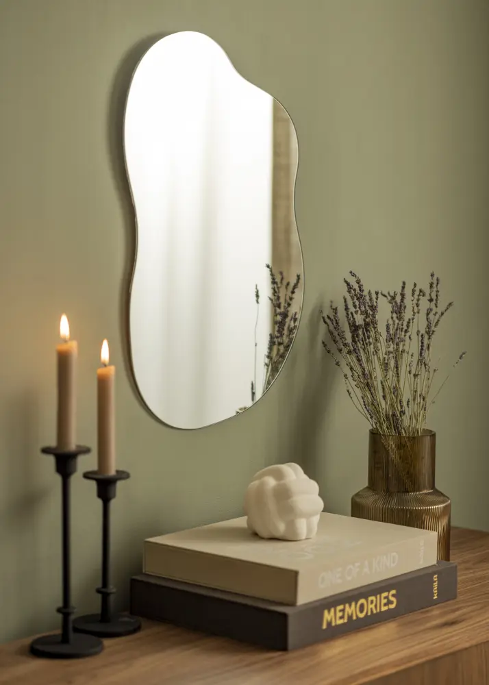 Curvy Cloud este o oglindă de perete elegantă, cu un design unic și formă asimetrică. Marginile creează un model ondulat delicat care – împreună cu lipsa cadrului oglinzii – oferă o impresie minimalistă. Chiar și sticla subțire a oglinzii de 4 mm contribuie la această senzație. Oglinda poate fi montată pe perete cu ajutorul suporturilor de pe spate.
