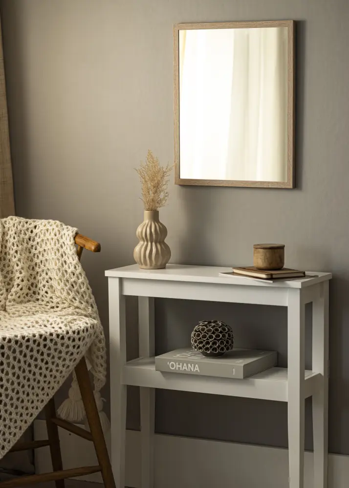 Oglindă Devon Ivory este o oglindă elegantă și stilată pe care o poți obține exact în dimensiunile dorite. Cu culoarea sa albă și tonul său deschis de fildes, se potrivește perfect în majoritatea stilurilor de interior, de la modern la cel mai clasic. Structura subtilă de lemn care se întinde de-a lungul marginilor oferă oglinzii un sentiment natural și armonios, ceea ce o face o alegere excelentă pentru dormitoare, sufragerii sau holuri.