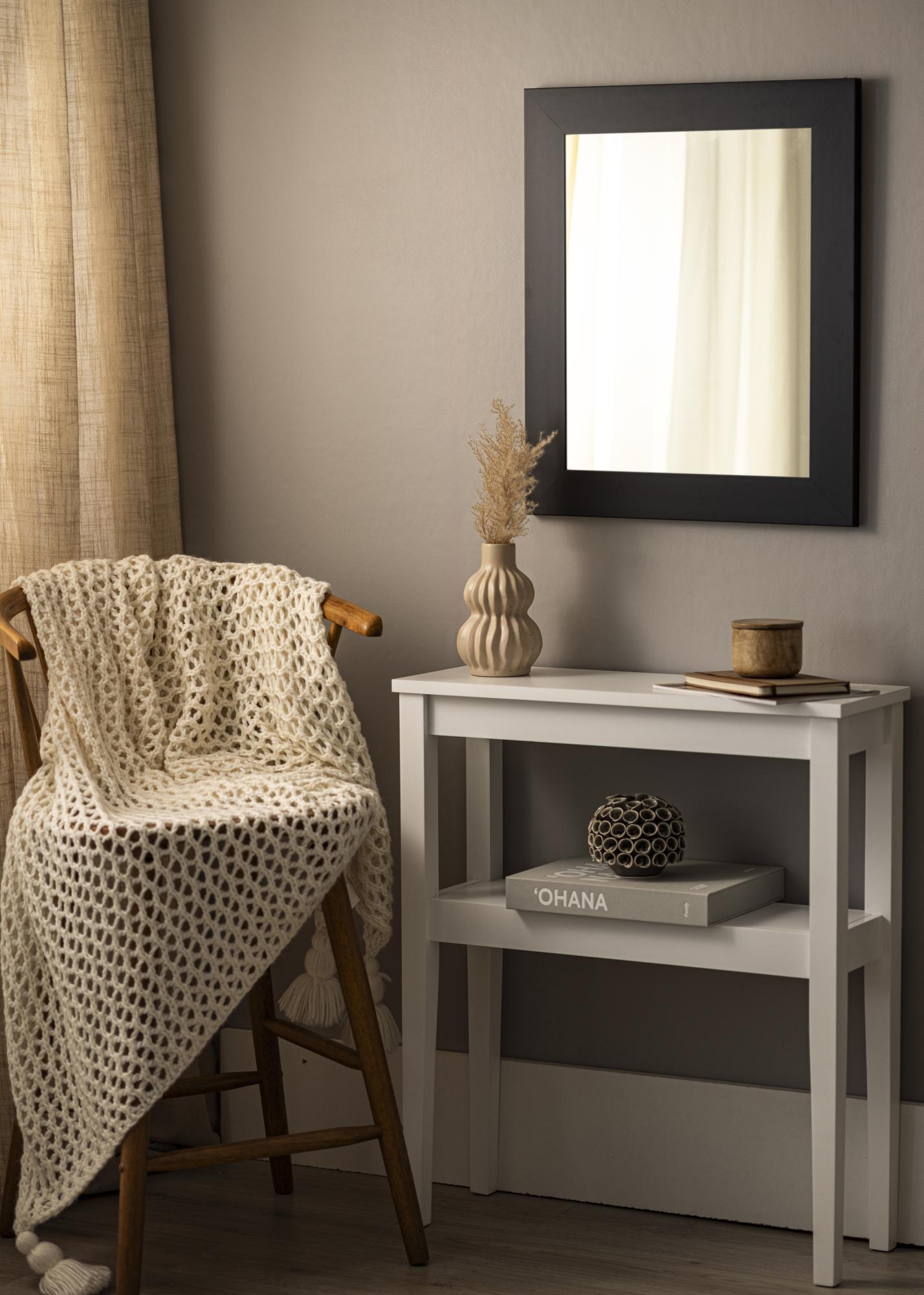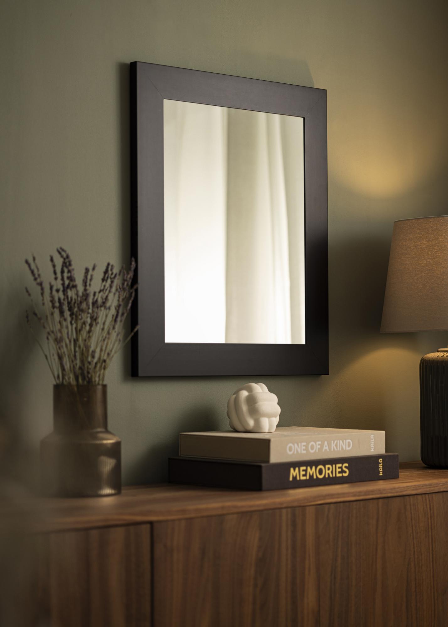 Această oglindă are o culoare neagră elegantă, care oferă un aspect modern și stilat. Chenarul de ramă de 69 mm lățime din lemn de Ayos mat negru contribuie la aspectul sofisticat al oglinzii și o transformă într-un excelent complet atât pentru stilurile de interior clasice, cât și pentru cele moderne. Cu o adâncime de 22 mm, oglinda are o construcție robustă care îi asigură durabilitatea și stabilitatea.