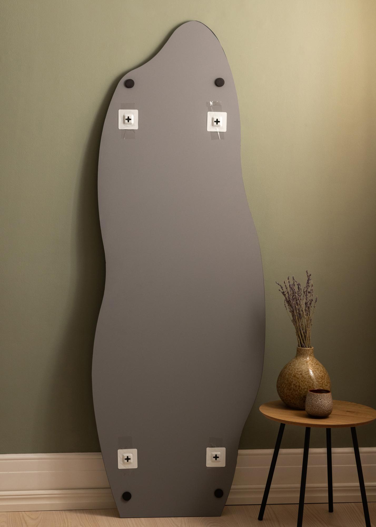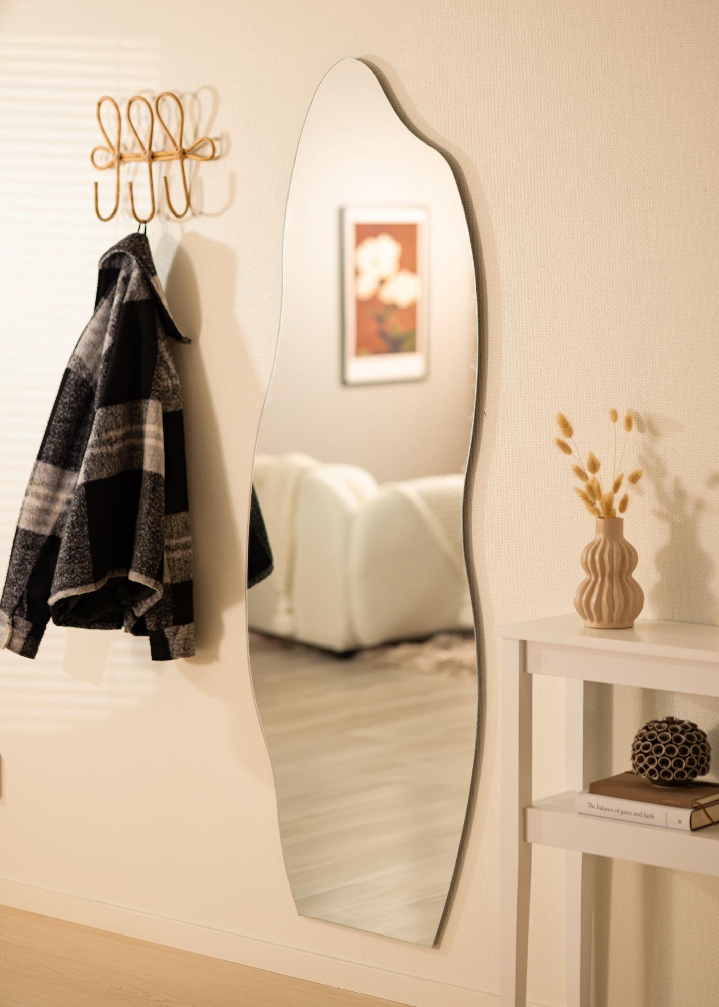 Oglinda are o formă unică, asemănătoare unui val, care este largă la bază și se curbează elegant spre partea superioară. Această formă neobișnuită o transformă într-o operă de artă și adaugă un accent dinamic peretelui dvs. Este concepută pentru a fi un punct central în casa dvs., indiferent dacă este plasată în hol, dormitor sau sufragerie.