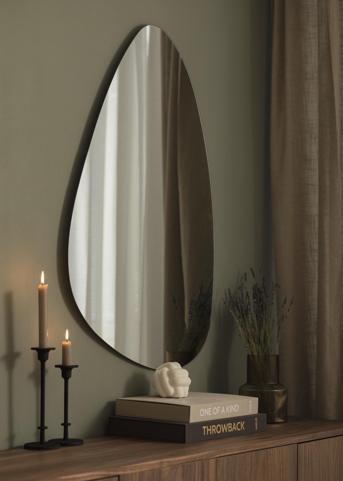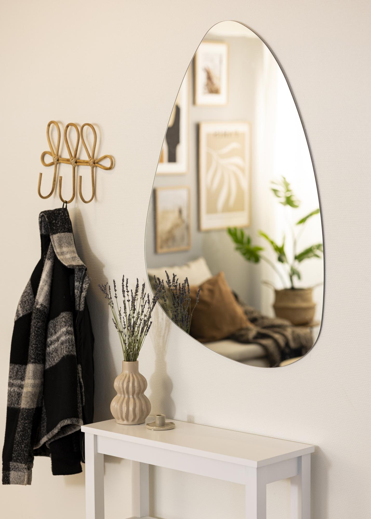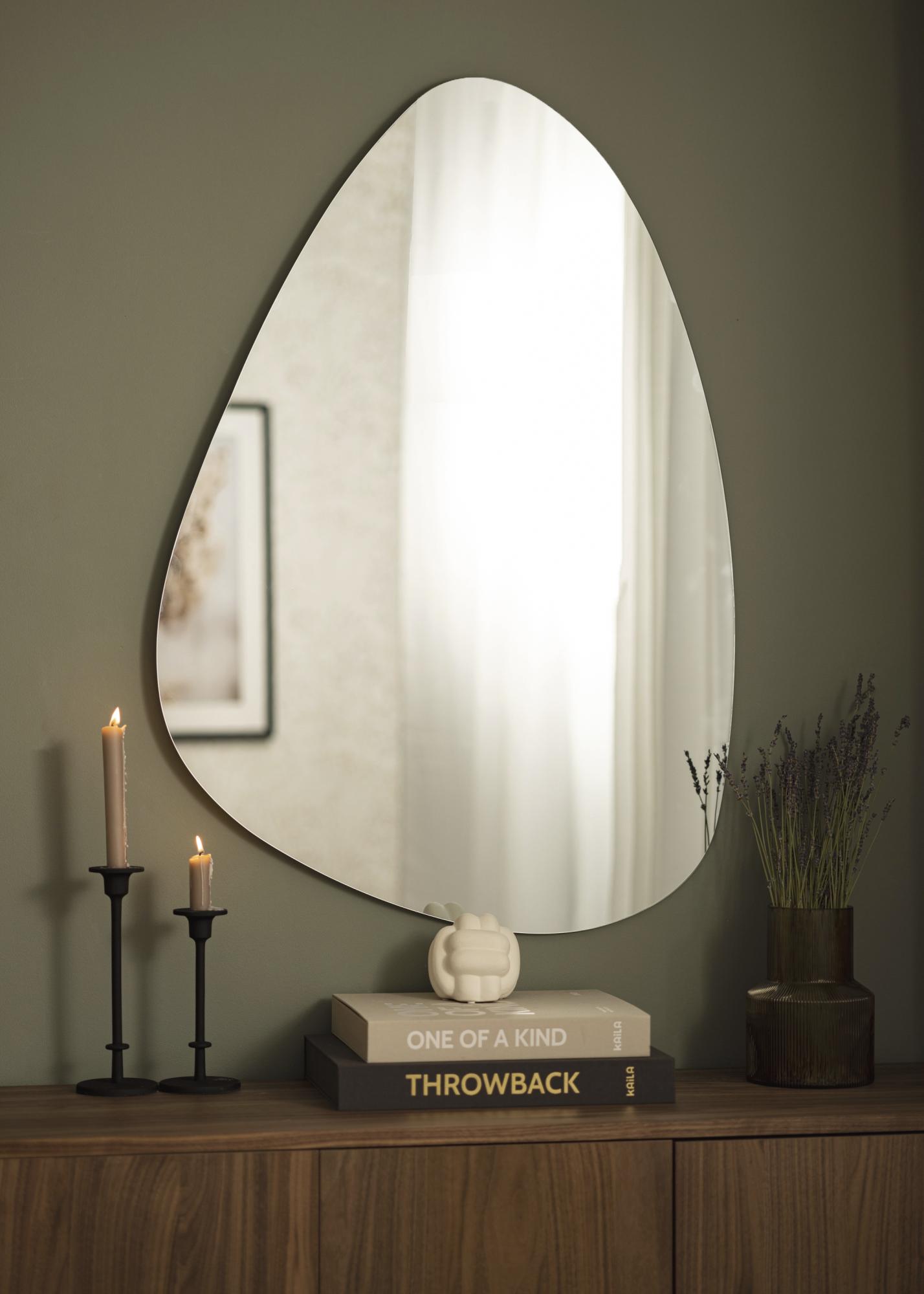 Această oglindă este perfectă pentru tine dacă cauți o oglindă elegantă în stil minimalist. Forma asimetrică este combinată cu un geam subțire și margini fără ramă, ceea ce oferă un aspect foarte elegant. Pe spate există suporturi de perete.