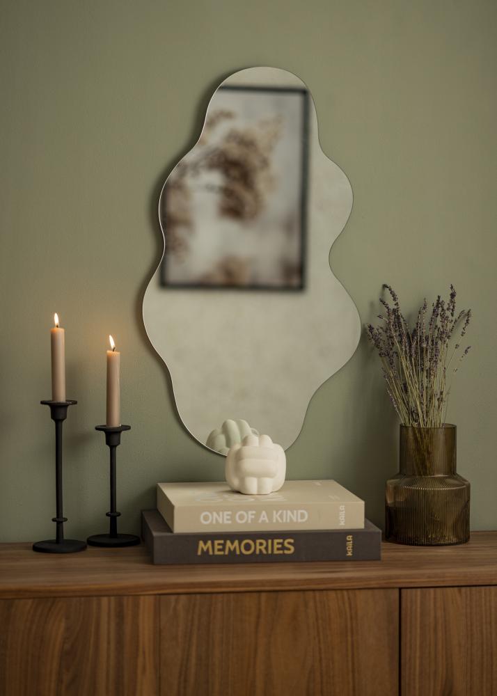 Ai multe linii drepte în casa ta? Atunci este extraordinar de frumos să rupi tendința cu o oglindă cu formă moale ondulată! Fierce Cloud este o oglindă de perete la modă, fără ramă, într-un design cu margini ondulate. Geamul subțire al oglinzii de 4 mm face ca oglinda să pară elegantă și delicată, o caracteristică potrivită atât pentru dormitor, cât și pentru sufragerie. Dimensiunile ei sunt de 40x70 cm.