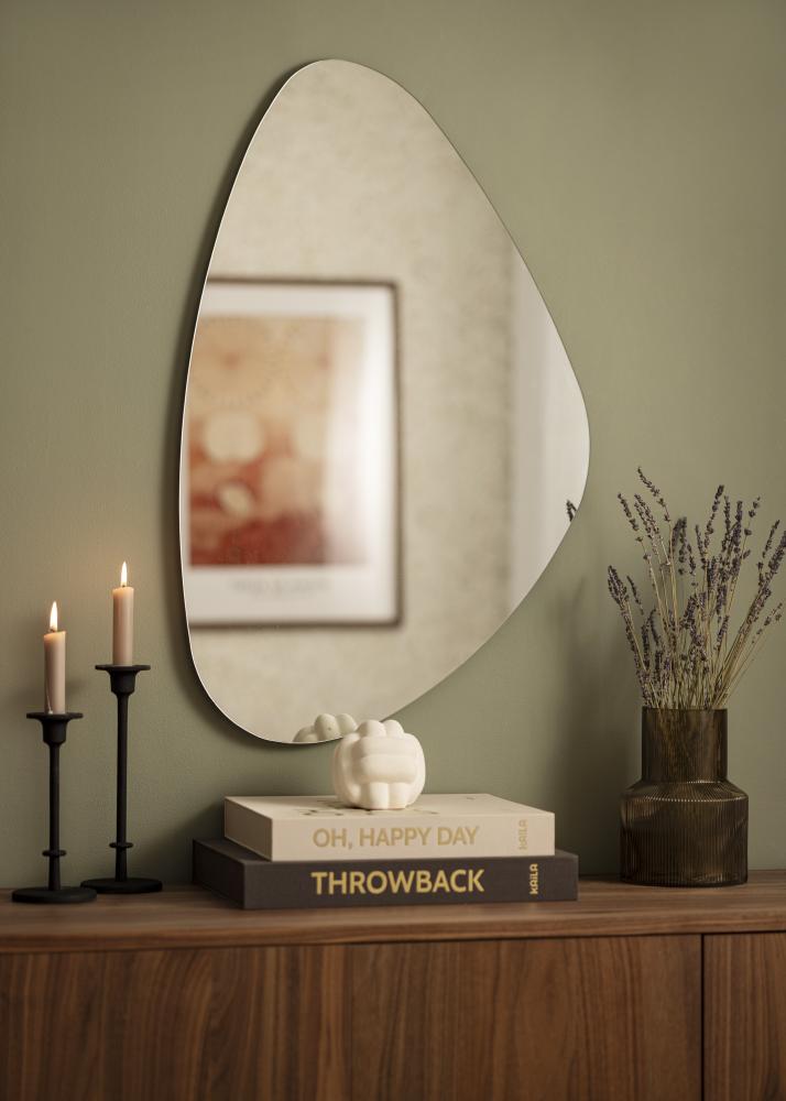 Forma distinctă asimetrică cu o margine ondulată face ca oglinda să iasă în evidență și să devină un subiect de discuție în casa ta. Fie că o plasezi în hol, living sau dormitor, această oglindă va adăuga o notă de eleganță și stil. Opțiunile sale flexibile de montare fac ca aspectul camerei să fie ușor de reînnoit atunci când îți dorești.